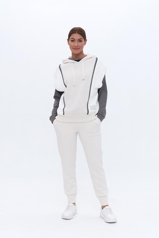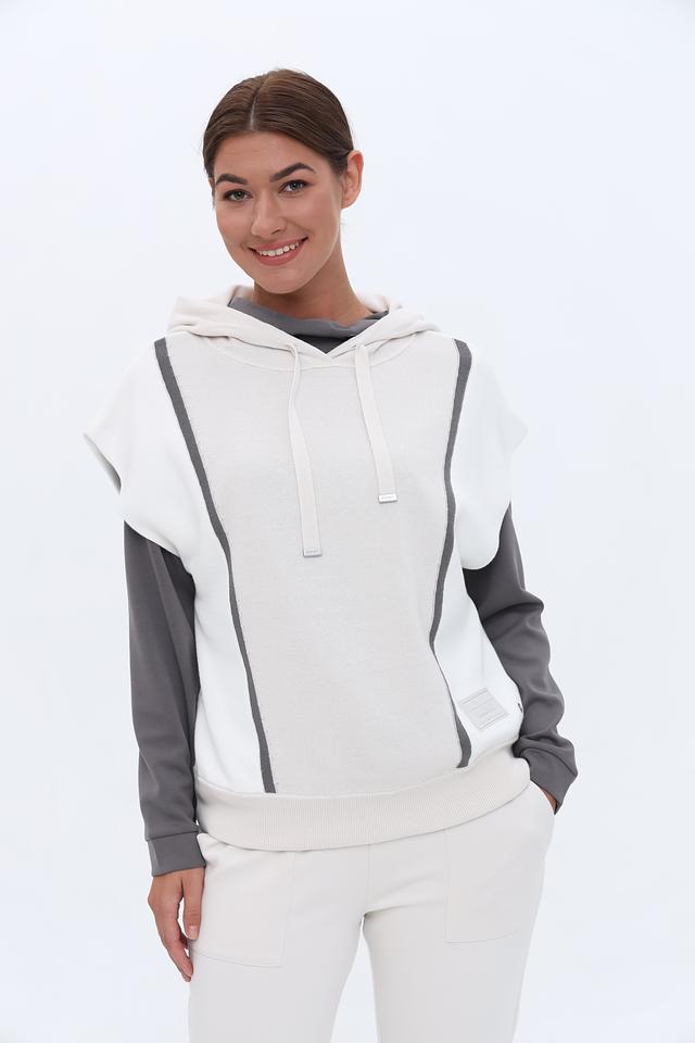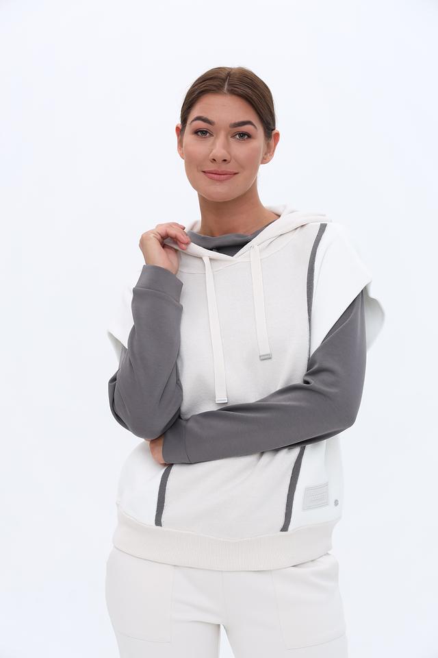 Стильный жилет Monari серого и белого цвета с капюшоном и контрастными вставками. Модель выполнена из мягкого хлопка, обеспечивающего комфорт в носке. Идеально дополнит повседневный образ. Состав: хлопок 100%