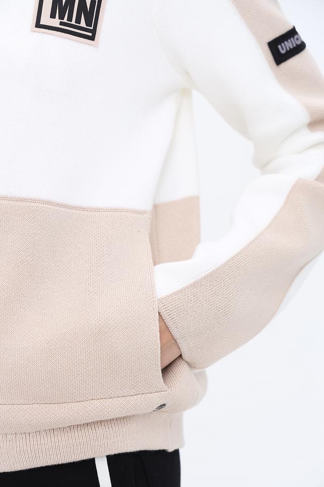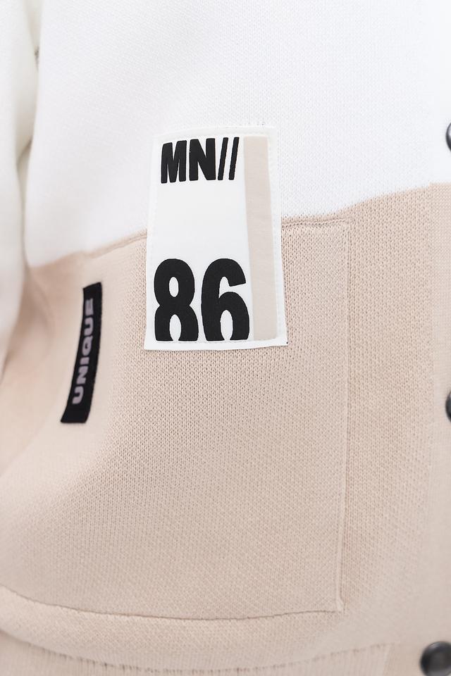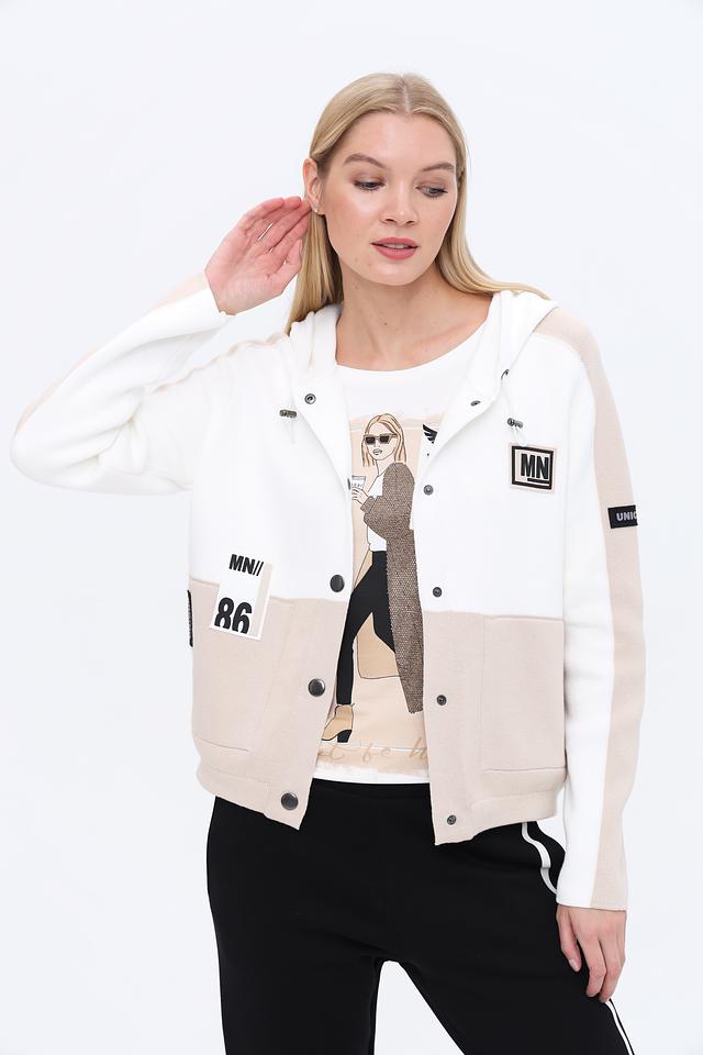 Жакет Monari бежевого и белого цвета с оригинальным принтом – стильное решение для создания яркого образа. Модель выполнена из мягкого трикотажа с капюшоном и застежкой на кнопки. Состав: хлопок 98%, полиамид 2%