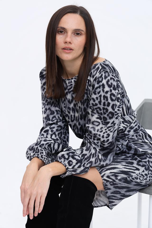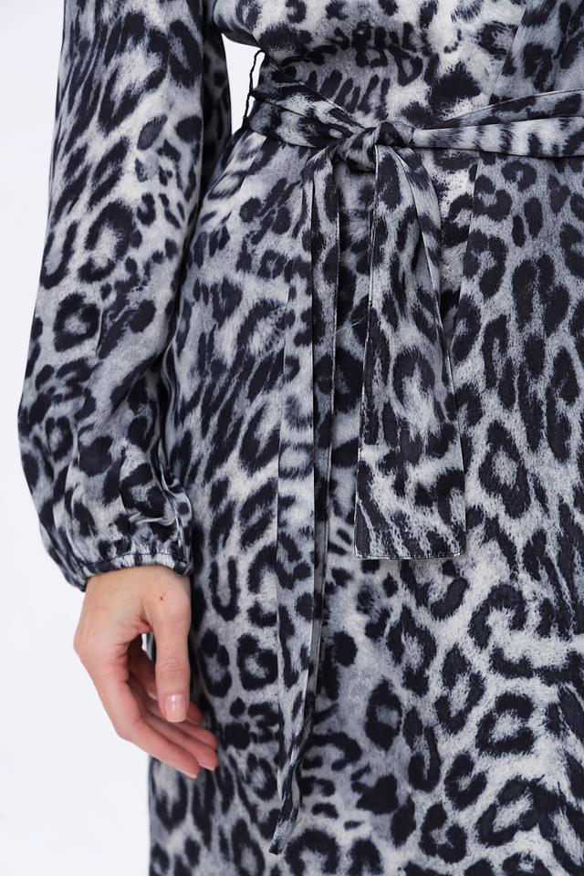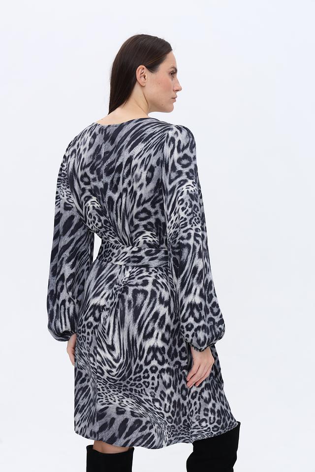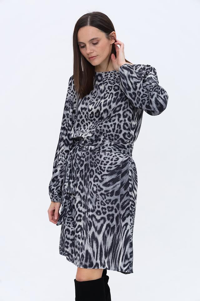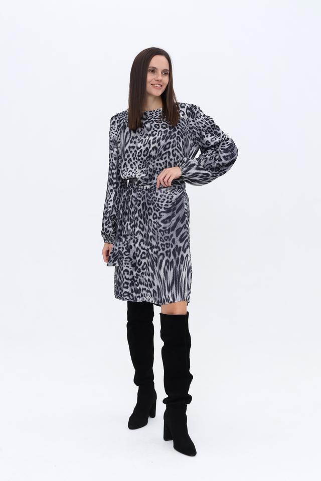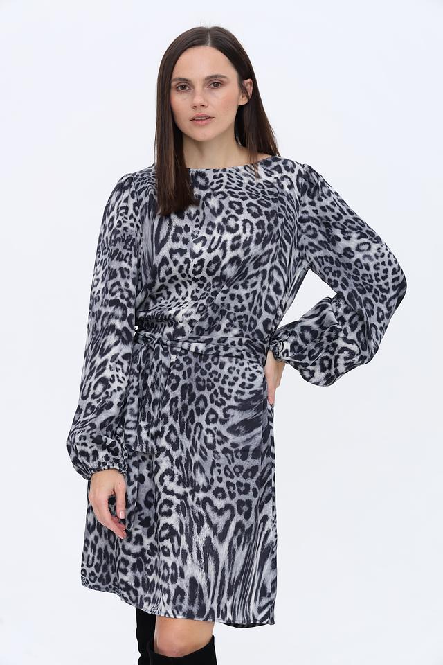 Платье Monari серого цвета с эффектным леопардовым принтом станет стильным дополнением вашего гардероба. Модель с длинными рукавами и поясом подчеркнет талию и создаст женственный силуэт. Состав: вискоза 100%