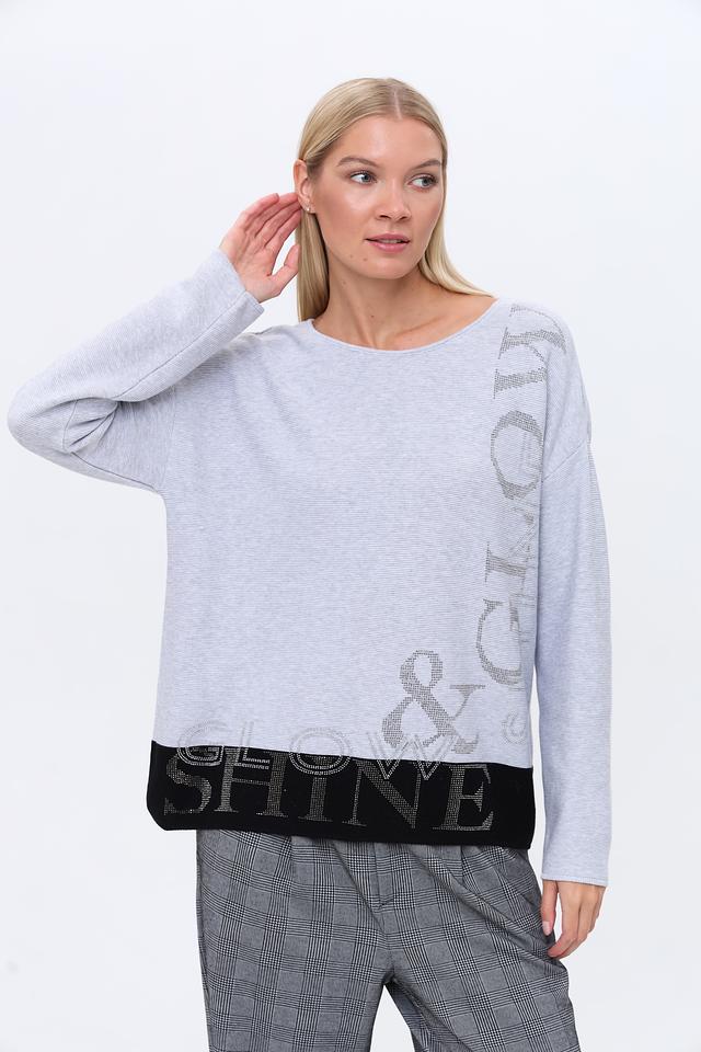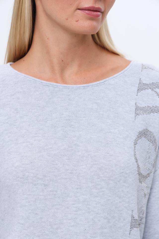 Серый пуловер Monari – это стильная и комфортная модель свободного кроя, украшенная эффектным декором из страз и надписью. Изготовлен из мягкого хлопка, обеспечивающего приятные ощущения при носке. Состав: хлопок 100%