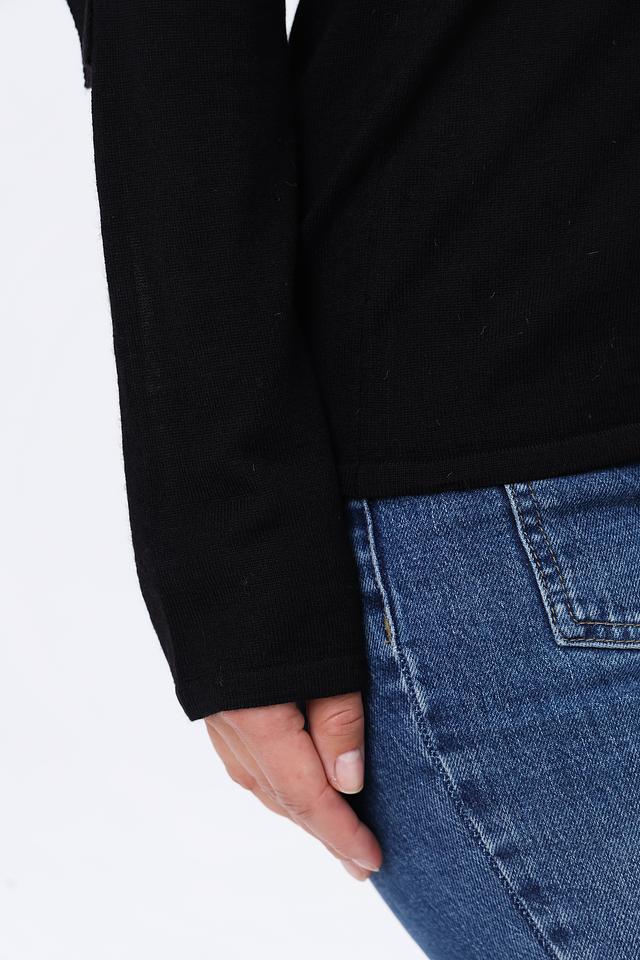 Чёрный пуловер Monari с оригинальным дизайном и открытыми плечами станет стильным дополнением вашего гардероба. Модель выполнена из мягкого трикотажа с добавлением шерсти, что обеспечивает комфорт и тепло. Состав: шерсть 50%, полиакрил 50%