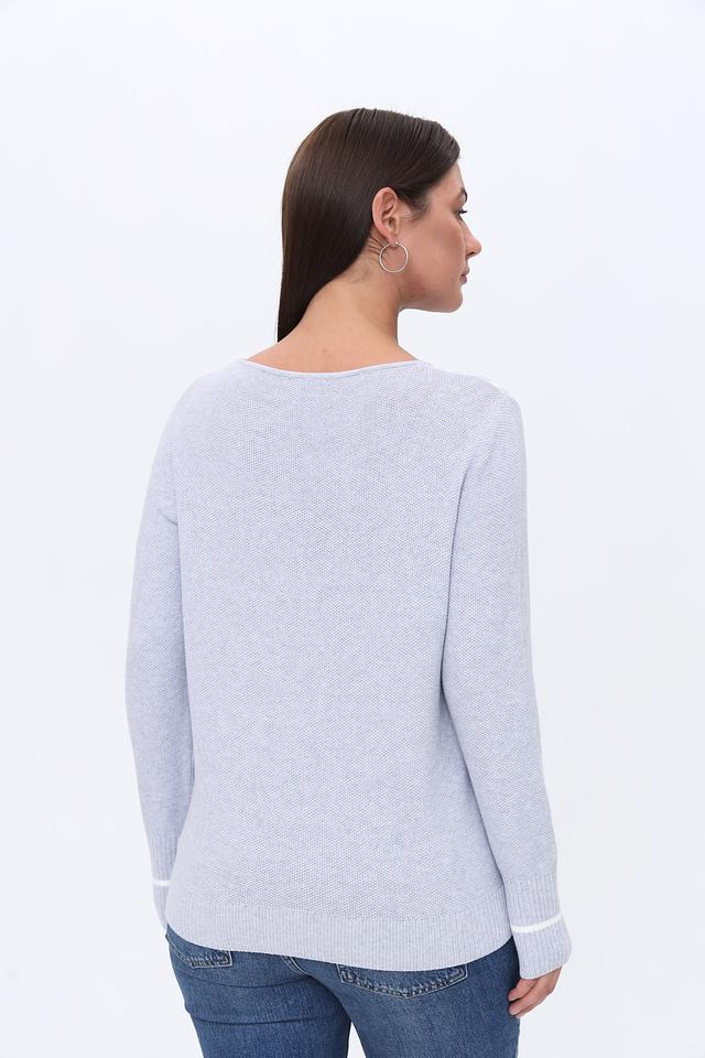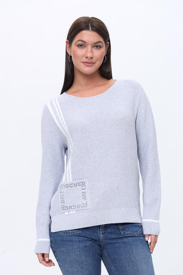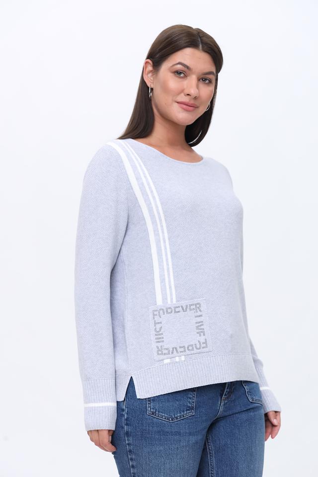 Светло-серый пуловер Monari с контрастными белыми полосками и декоративной надписью добавит образу лёгкости и стиля. Изготовлен из мягкого хлопка, обеспечивающего комфорт в носке. Состав: хлопок 100%