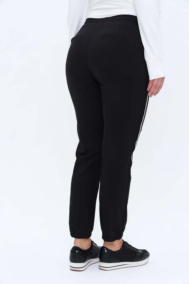 Особенностью модели является декоративная полоса, проходящая вдоль штанин, которая добавляет брюкам стильный акцент. Брюки идеально подойдут для создания как повседневных, так и более элегантных образов.