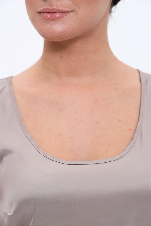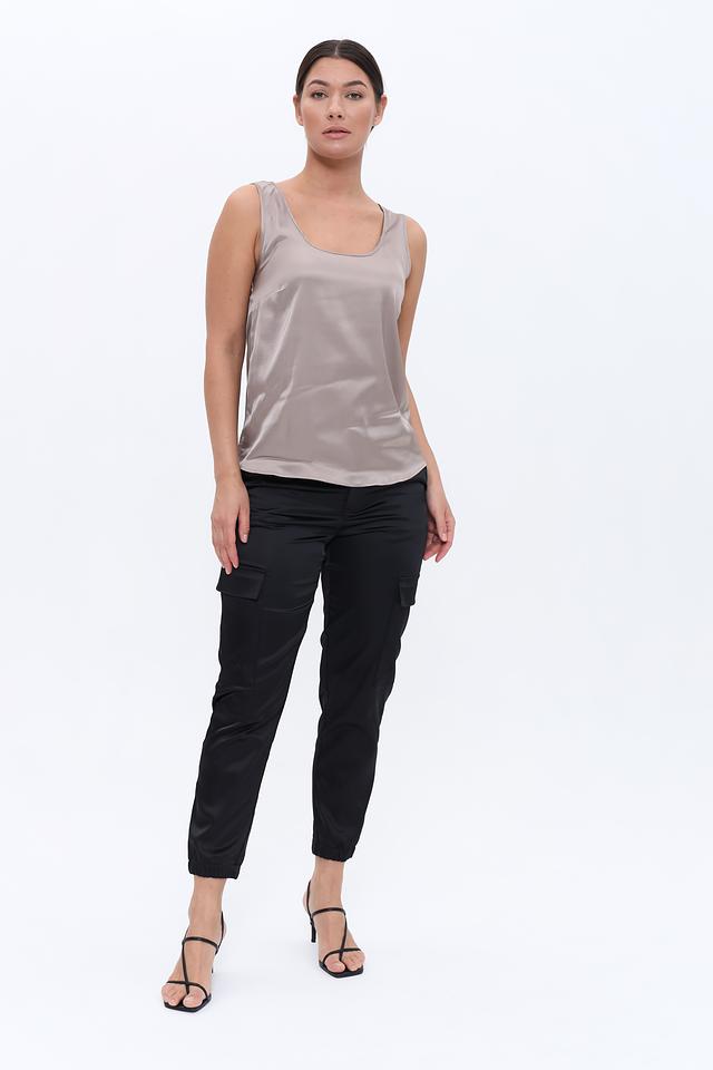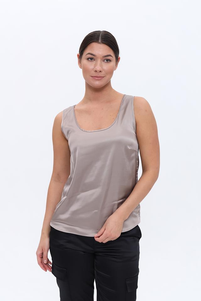 Топ имеет прямой крой и тонкие бретели, что придает ему легкость и изящество. Бежевый цвет делает его универсальным и подходящим для создания различных стилей.