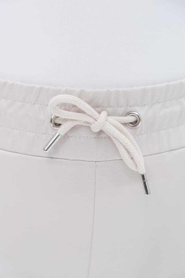 Брюки выполнены из высококачественного хлопка с добавлением эластана, что обеспечивает мягкость, приятные тактильные ощущения и хорошую посадку по фигуре. Эластичный пояс с кулиской позволяет регулировать облегание и обеспечивает дополнительный комфорт.