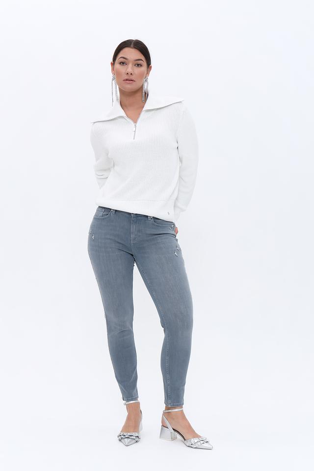 Этот пуловер от Monari станет прекрасным дополнением к вашему гардеробу. Он выполнен в белом цвете и имеет оригинальный воротник-стойку с короткой молнией. Фактурная вязка придает изделию объем и интересную текстуру.