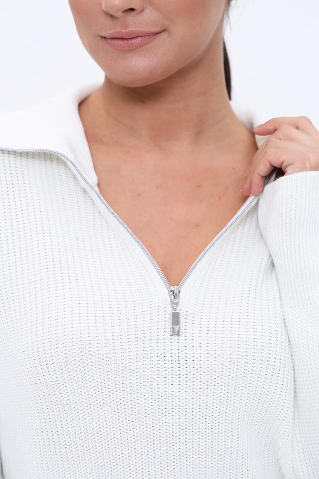 Белый пуловер Monari с воротником-стойкой и молнией – стильное и комфортное решение для создания повседневных образов. Изготовлен из мягкого трикотажа с фактурной вязкой, что придает ему особый шарм. Состав: хлопок 50%, полиакрил 50%