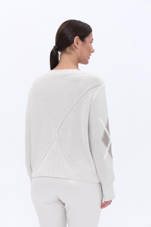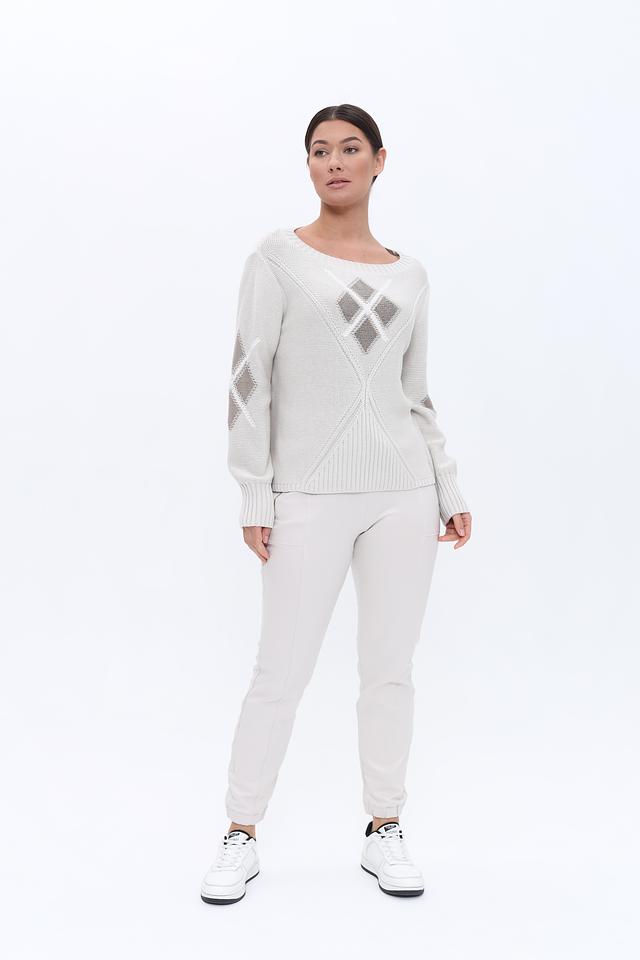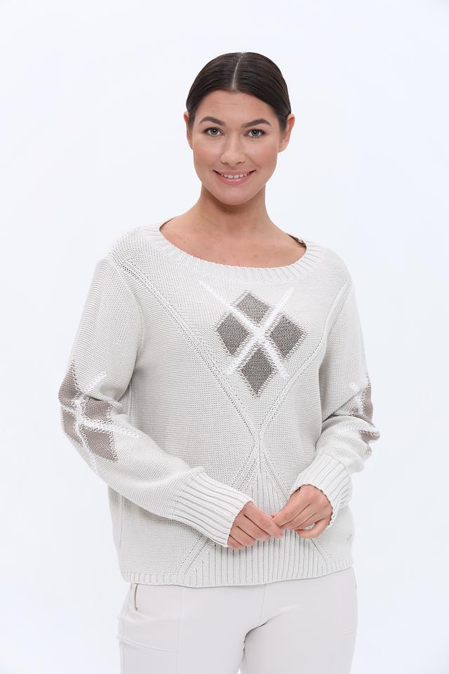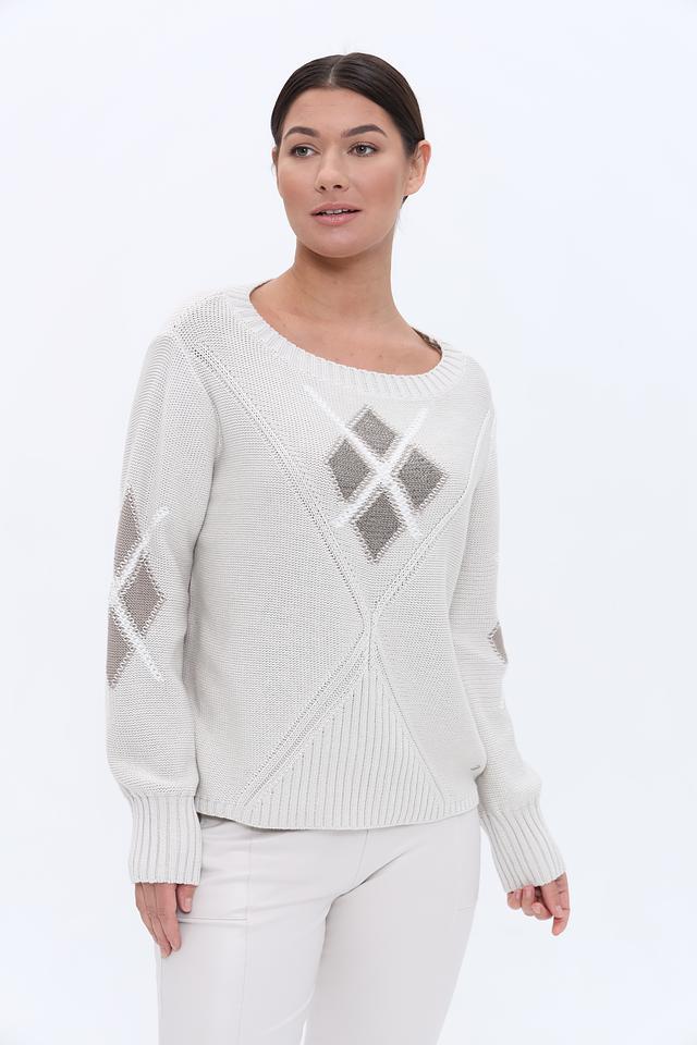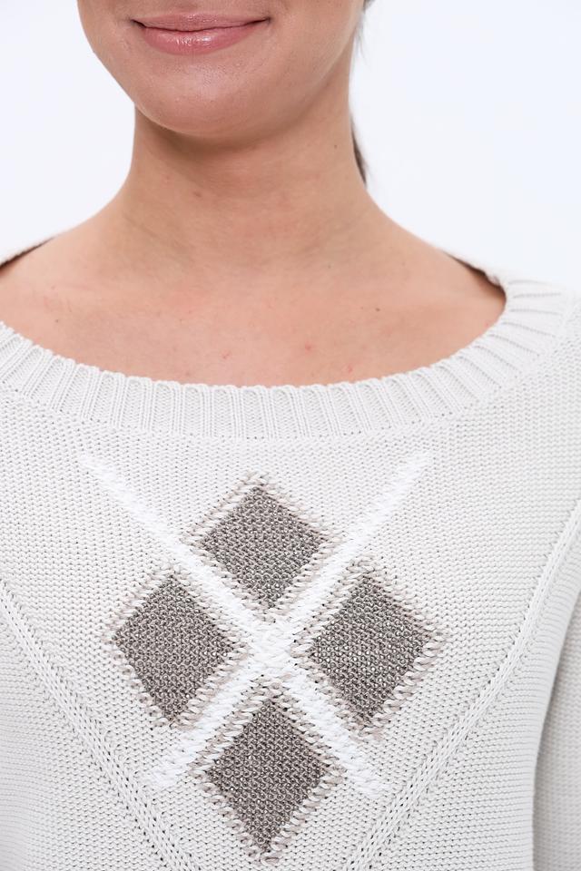 Бежевый пуловер Monari с геометрическим узором из ромбов станет стильным дополнением к вашему гардеробу. Изготовлен из мягкого и приятного к телу сочетания хлопка и полиакрила, обеспечивая комфорт в носке. Состав: хлопок 50%, полиакрил 50%