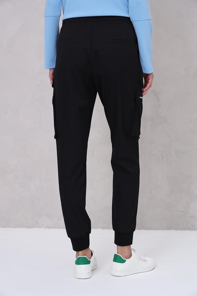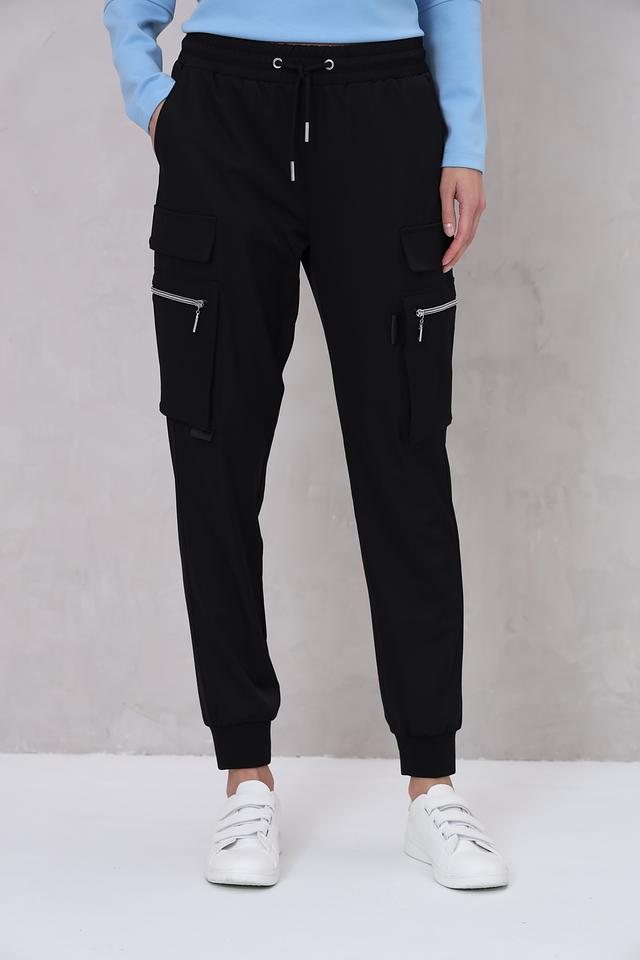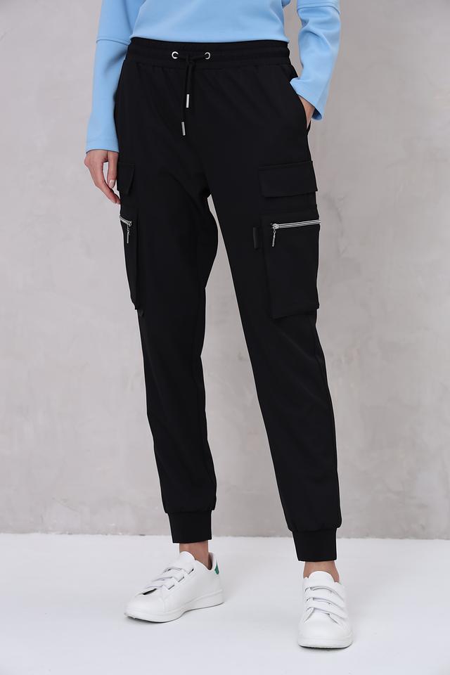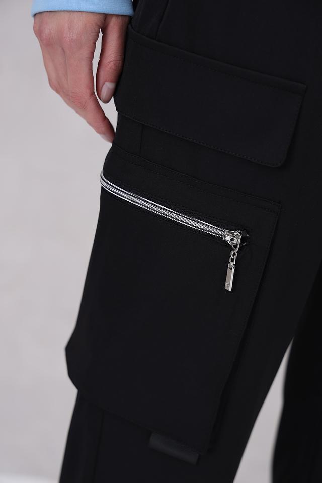 Модель оснащена двумя функциональными карманами с клапанами на молнии, что добавляет практичности и стиля. Эластичный пояс с кулиской позволяет регулировать посадку по фигуре. Низ брюк дополнен манжетами, что придает им более современный и расслабленный вид.