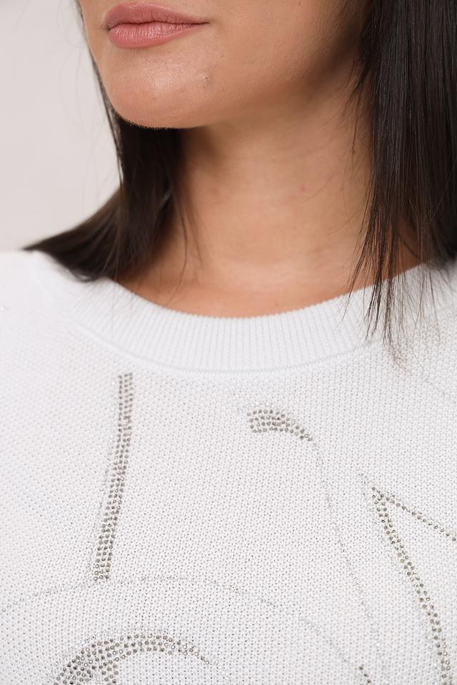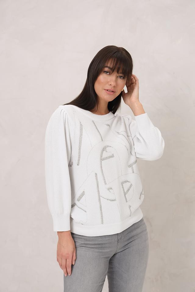 Белый пуловер Monari с оригинальным принтом в виде лица – стильное и комфортное решение для повседневного образа. Изготовлен из 100% хлопка, обеспечивающего мягкость и удобство в носке. Состав: хлопок 100%