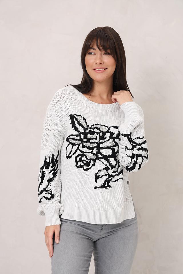 Белый пуловер Monari с оригинальным цветочным принтом станет стильным дополнением вашего гардероба. Изготовлен из мягкого хлопка с добавлением полиакрила для комфорта и долговечности. Состав: хлопок 60%, полиакрил 40%