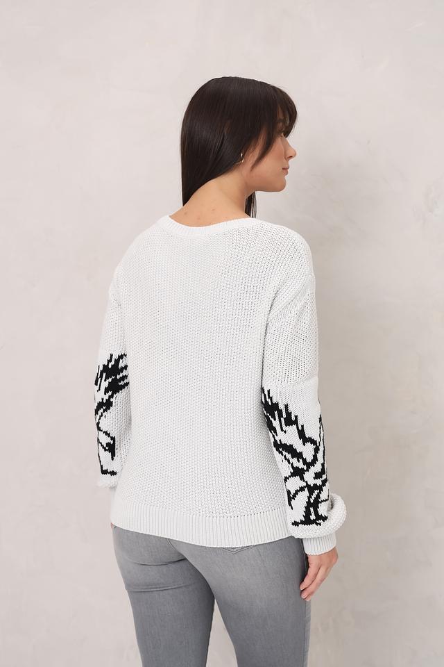 Пуловер изготовлен из высококачественного хлопка (60%) и полиакрила (40%), что делает его приятным на ощупь, тёплым и износостойким. Текстура вязки добавляет изделию объём и визуальный интерес.