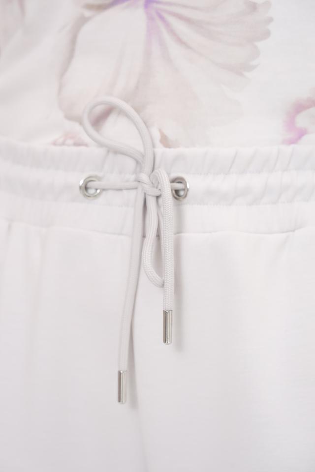 Брюки имеют удобный крой и эластичный пояс с регулируемой кулиской, обеспечивающие комфортную посадку. Функциональные карманы добавляют практичности. Состав ткани включает полиэстер, вискозу и эластан, что гарантирует мягкость, приятные тактильные ощущения и небольшую эластичность.