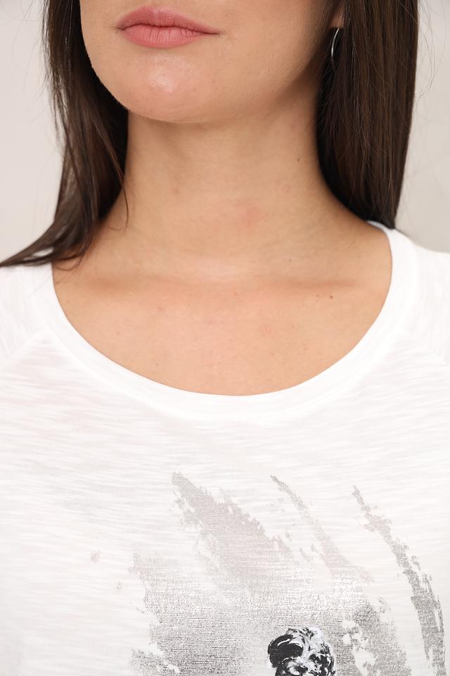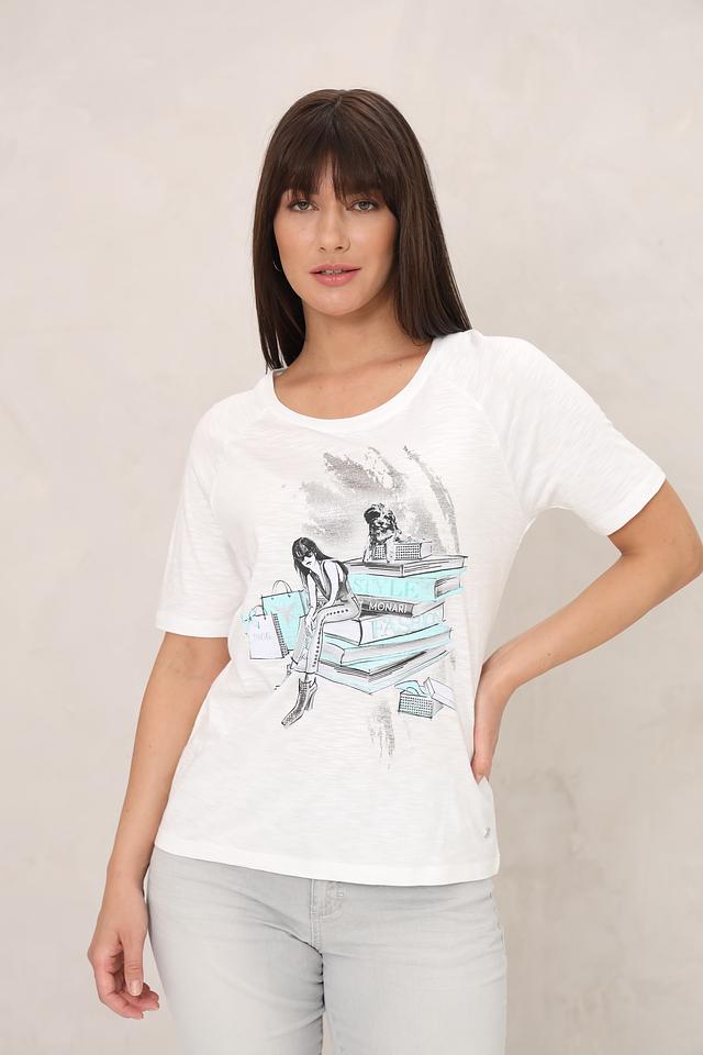 Белая футболка Monari с оригинальным принтом в виде стилизованного изображения девушки и архитектурных элементов. Изготовлена из мягкого хлопка с модалом, обеспечивающего комфорт и приятные ощущения при носке. Состав: хлопок 50%, модал 50%