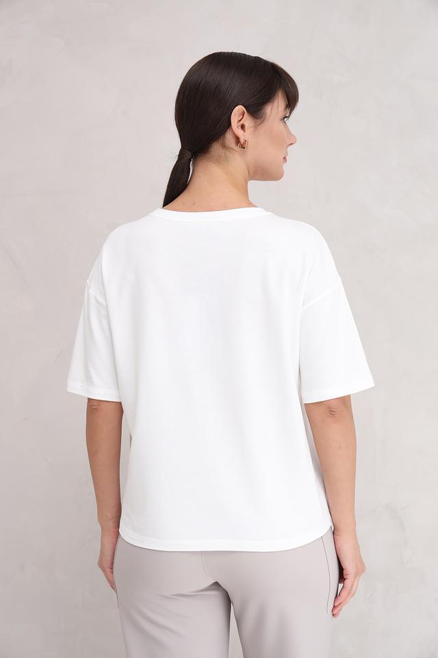 Футболка имеет свободный крой, который обеспечивает комфорт и свободу движений. Изготовлена из высококачественного материала – 50% хлопка и 50% модала, что делает ее приятной к телу и износостойкой.