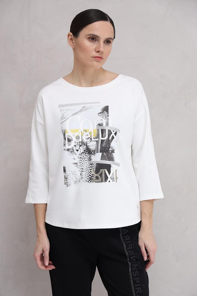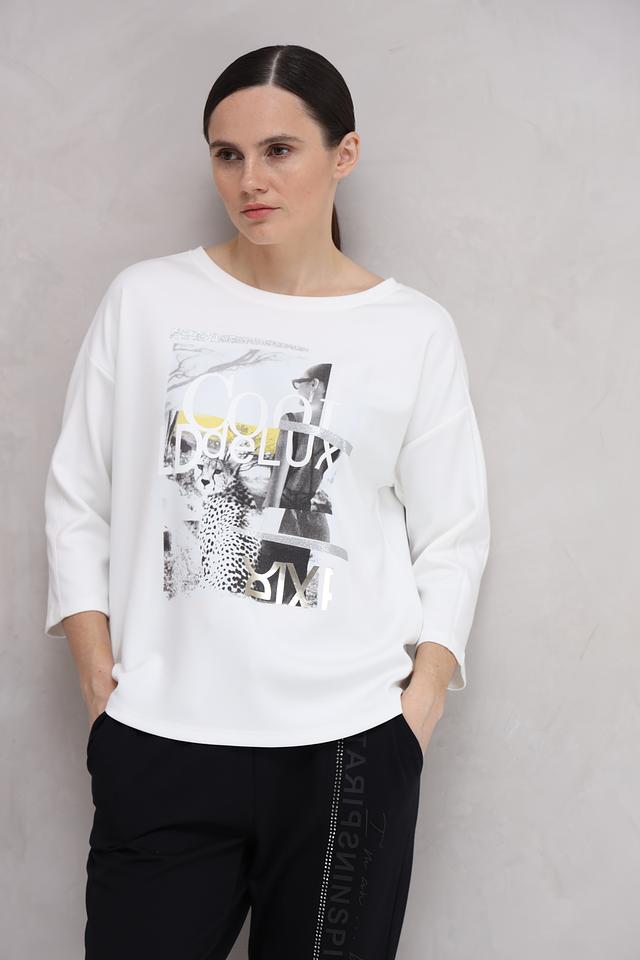 Этот лонгслив от Monari станет отличным дополнением к вашему гардеробу. Выполненный в белом цвете, он украшен ярким и запоминающимся принтом, который придает образу индивидуальность.
