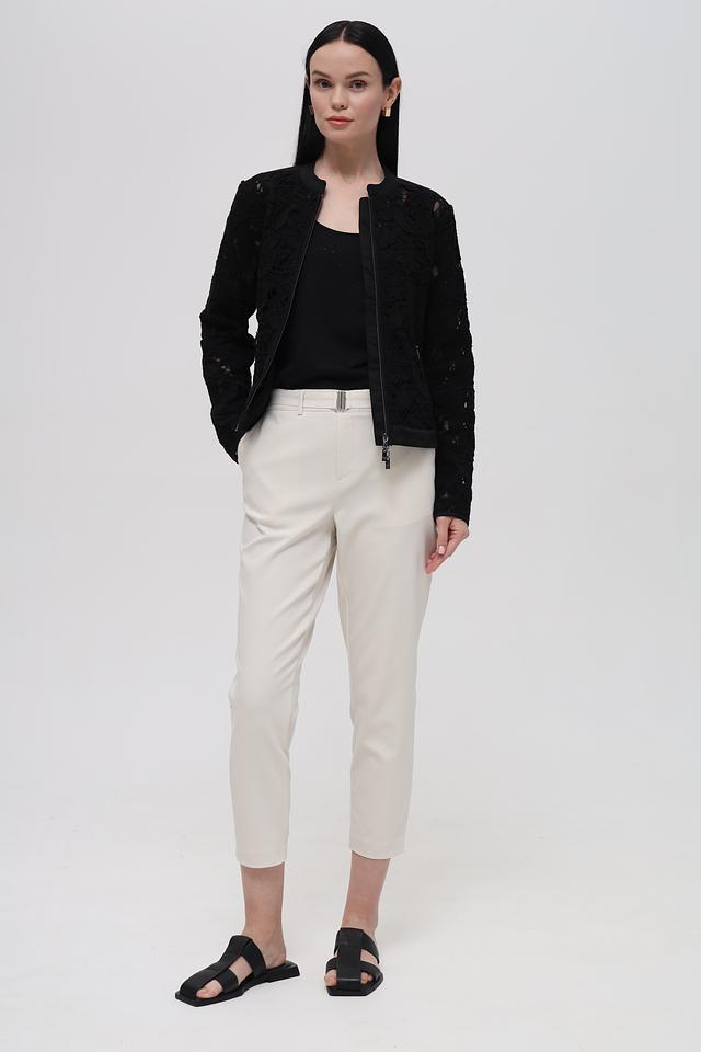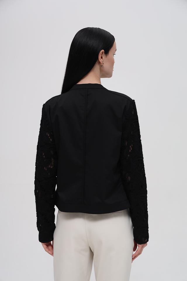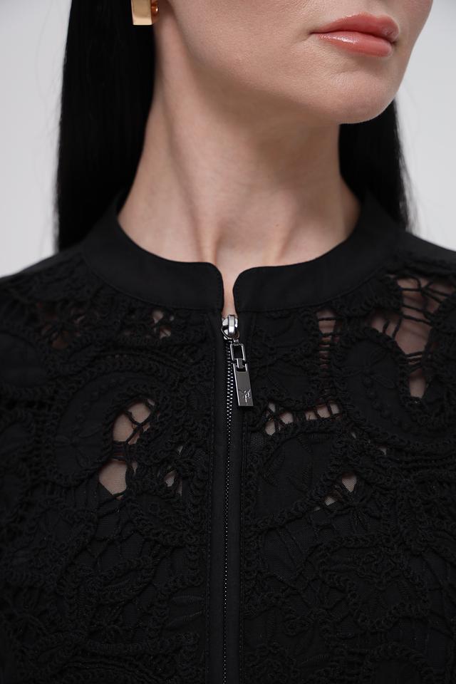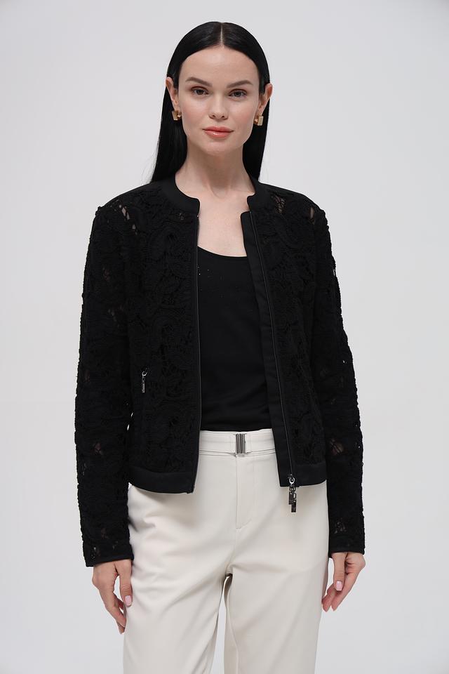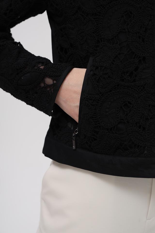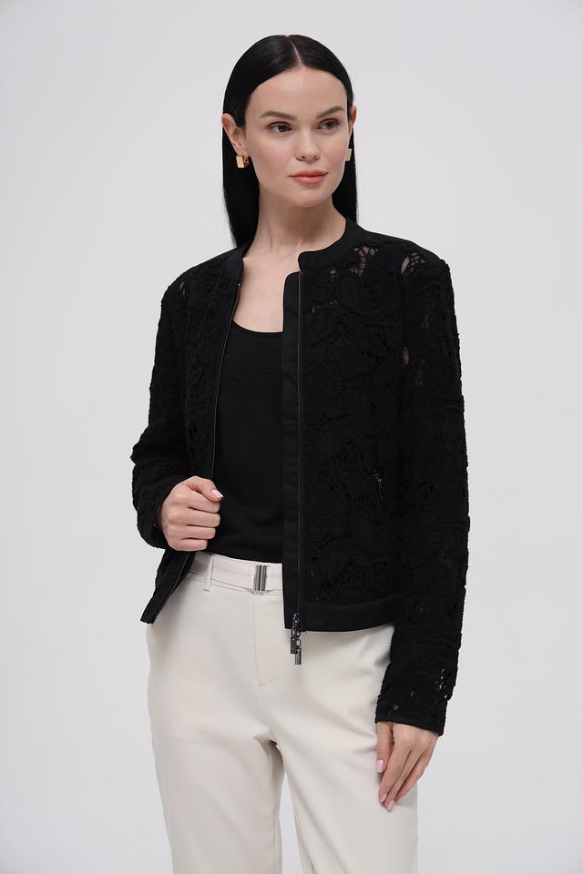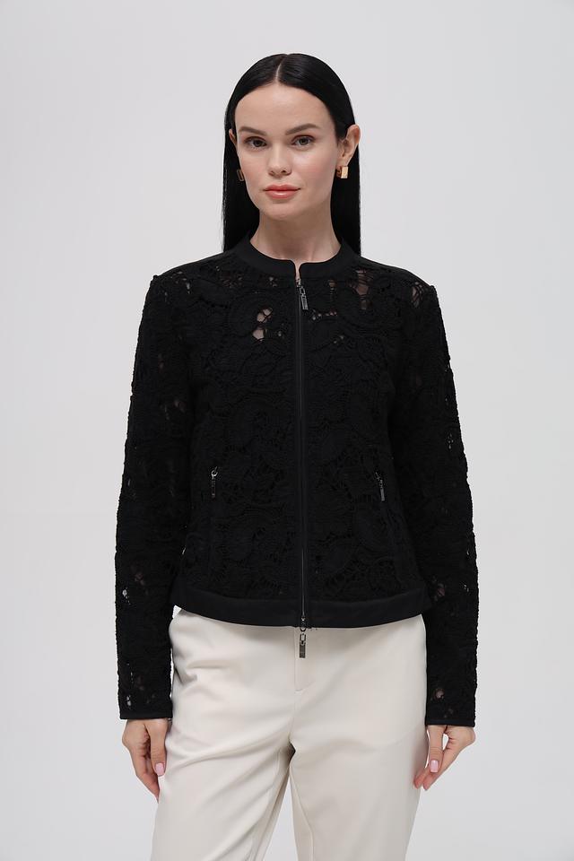 Чёрный жакет Monari из хлопка с изысканным кружевным декором. Модель на молнии с воротником-стойкой и длинными рукавами, идеально подходит для создания элегантного образа. Состав: хлопок 100%