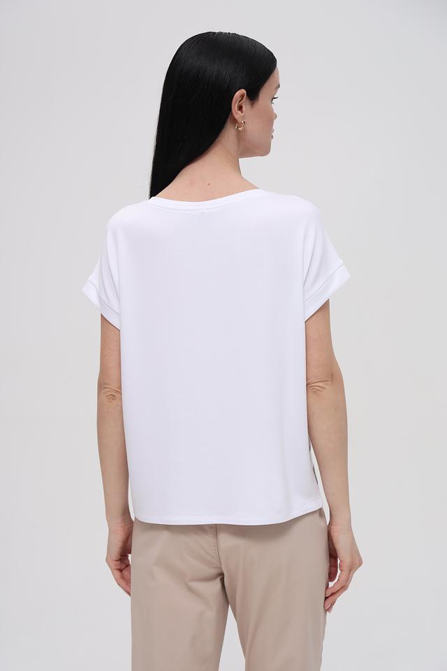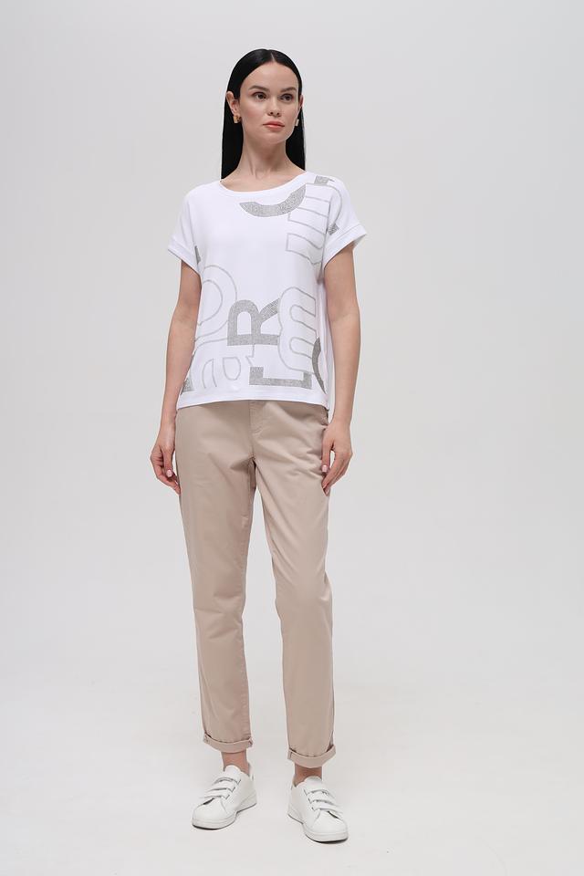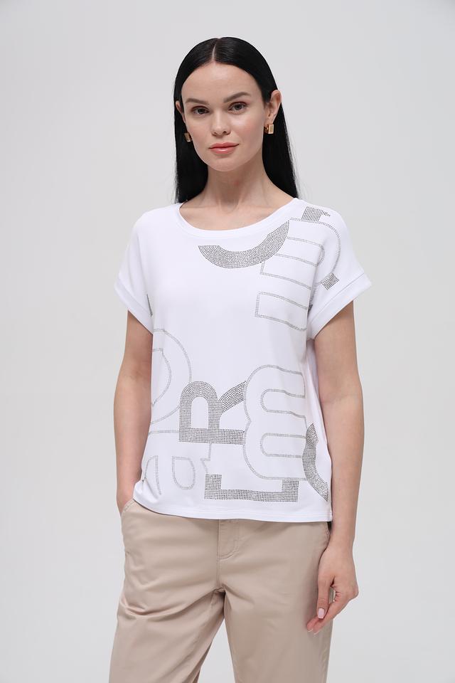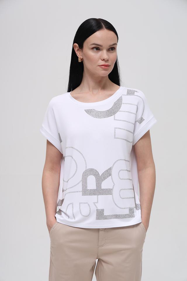 Белая футболка Monari с оригинальным декором из кристаллов станет стильным дополнением к вашему гардеробу. Модель свободного кроя с короткими рукавами выполнена из мягкой и приятной к телу ткани. Состав: вискоза 45%, модал 45%, эластан 10%