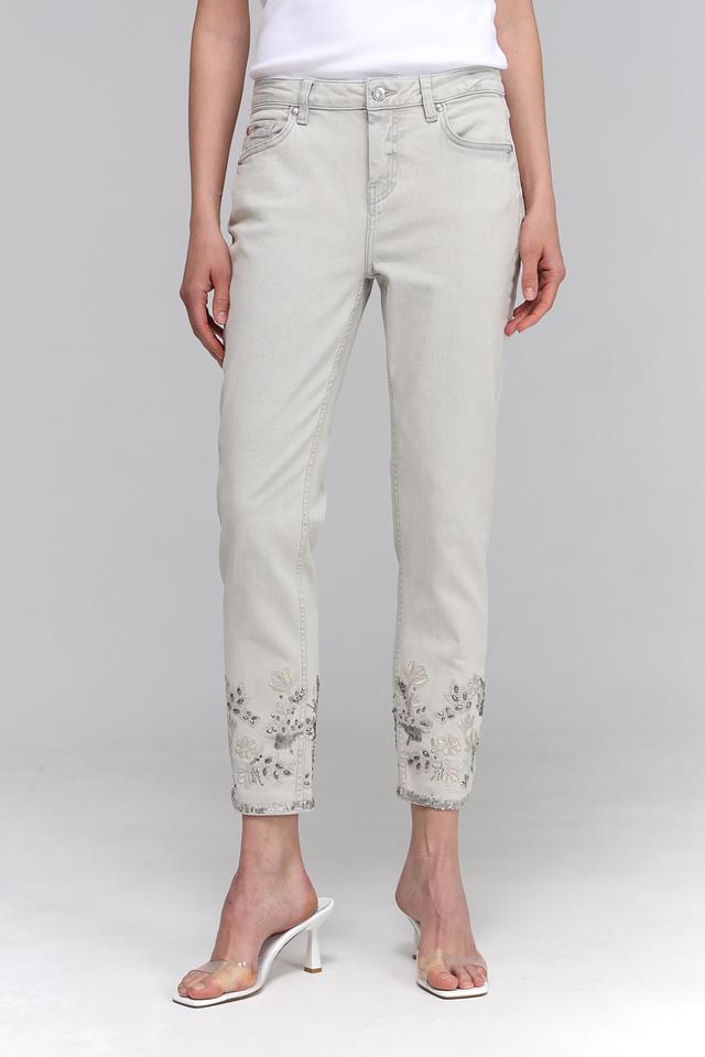 Эти брюки от Monari станут прекрасным дополнением к вашему гардеробу. Они выполнены в нежном бежевом цвете и украшены изысканной цветочной вышивкой на щиколотке, что придает им особый шарм.