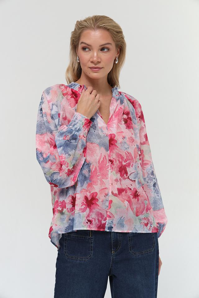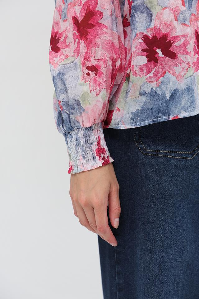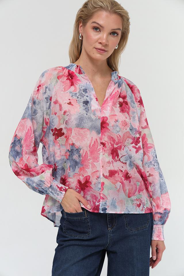 Блуза Monari нежно-розового цвета с ярким цветочным принтом станет прекрасным дополнением к вашему гардеробу. Модель выполнена из лёгкой ткани и имеет рукава с манжетами на резинке, что обеспечивает комфортную посадку. Состав: хлопок 100%
