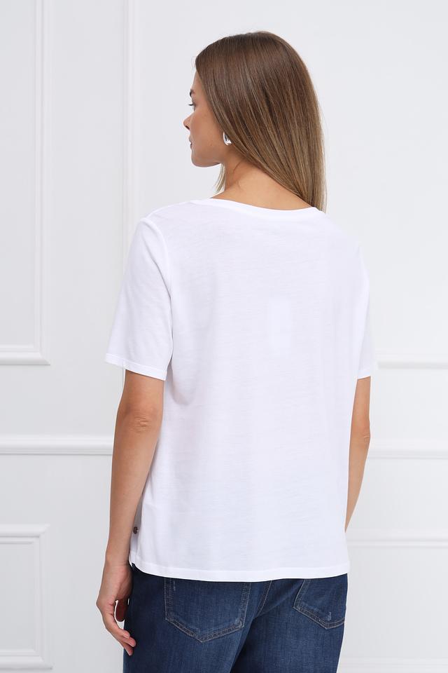 Эта белая футболка от Monari – идеальный выбор для создания повседневного, но при этом выразительного образа. Модель выполнена из приятной к телу ткани, сочетающей в себе 50% хлопка и 50% модал, что гарантирует комфорт и воздухопроницаемость.