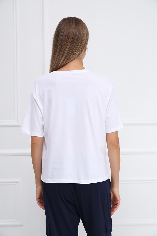 Эта белая футболка от Monari – отличный выбор для создания повседневного, но выразительного образа. Модель выполнена из высококачественного 100% хлопка, что гарантирует мягкость и комфорт при ношении.