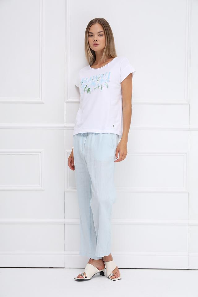 Эта футболка идеально подойдет для создания повседневных образов в летнее время. Ее можно сочетать с джинсами, шортами, юбками или брюками. Принт добавит яркости и оригинальности вашему стилю. Футболка Monari – это отличный выбор для тех, кто ценит комфорт, качество и модный дизайн.