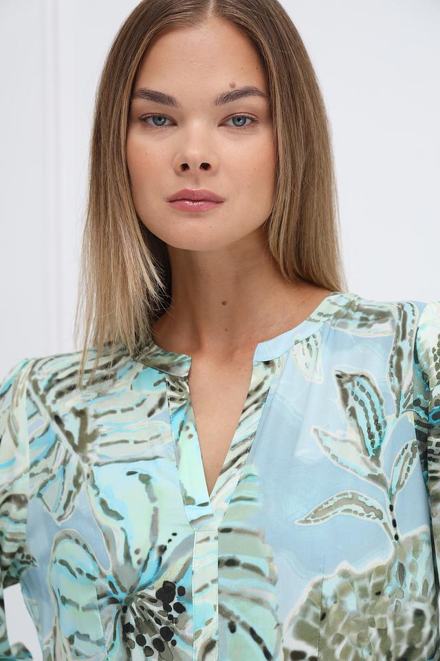 Платье Monari голубого цвета с ярким тропическим принтом – идеальный выбор для летнего гардероба. Легкая вискоза обеспечивает комфорт, а свободный крой создает непринужденный образ. Состав: вискоза 100%