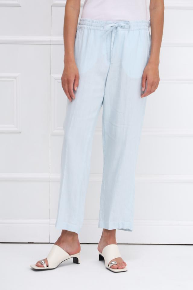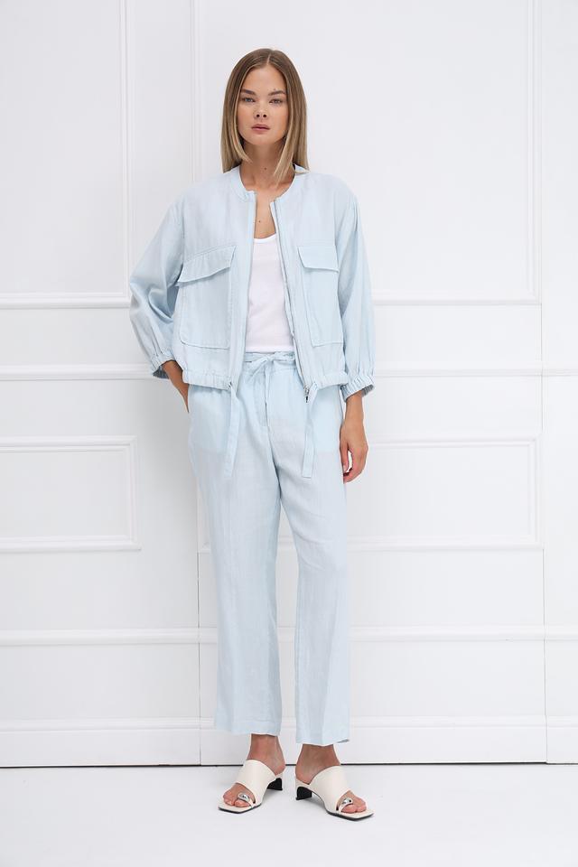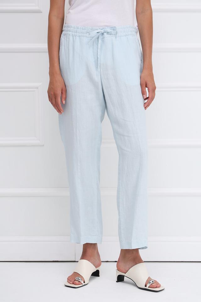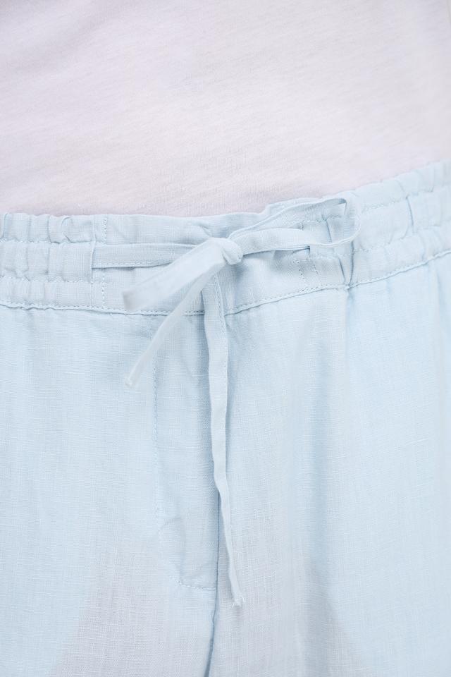 Нежный голубой цвет брюк легко сочетается с различными элементами одежды, создавая свежие и стильные образы. Идеально подойдут для повседневной носки, прогулок по городу или отдыха на природе. Состав: 100% лен.