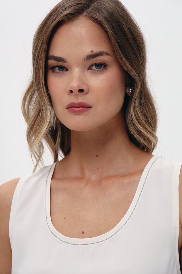 Белый топ Monari — это стильная и лаконичная модель без рукавов. Выполнен из 100% полиэстера, что обеспечивает комфорт и лёгкость в носке. Идеально дополнит как повседневный, так и вечерний образ. Состав: полиэстер 100%