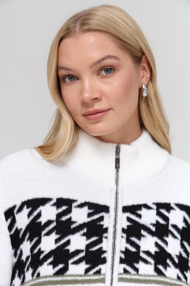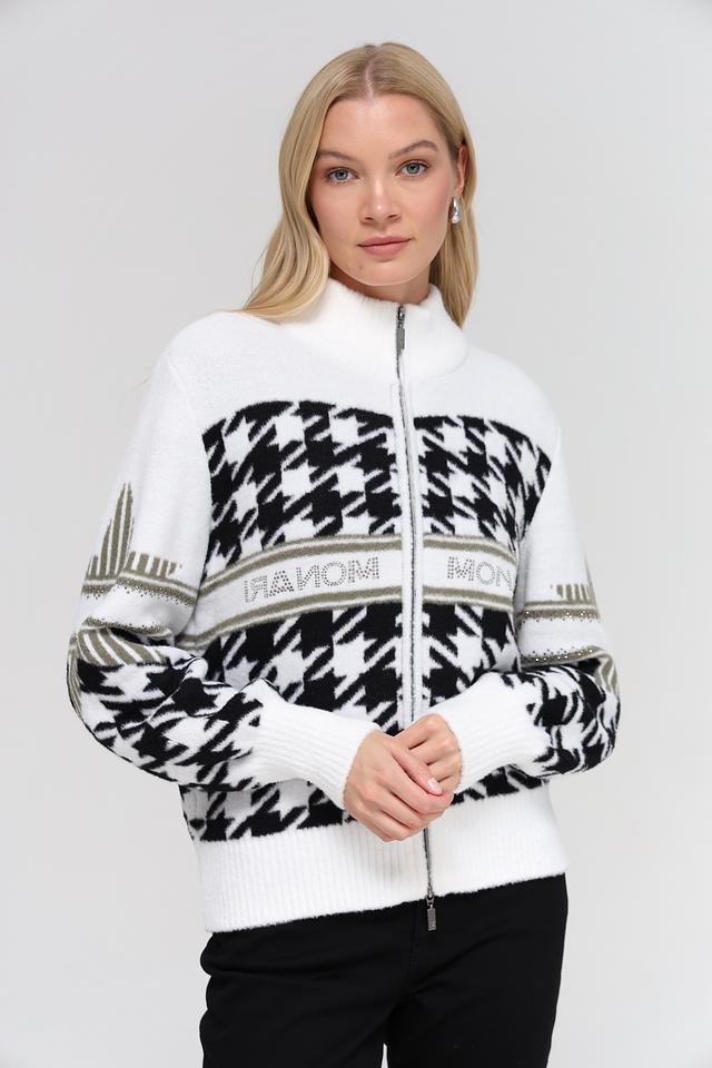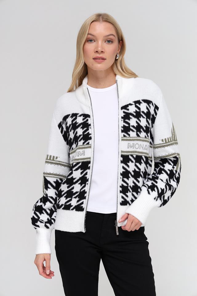Белый жакет Monari с узором "гусиная лапка" – стильная и комфортная модель на молнии. Жакет имеет оригинальный декор в виде логотипа бренда и декоративной отделки. Состав: полиамид 100%