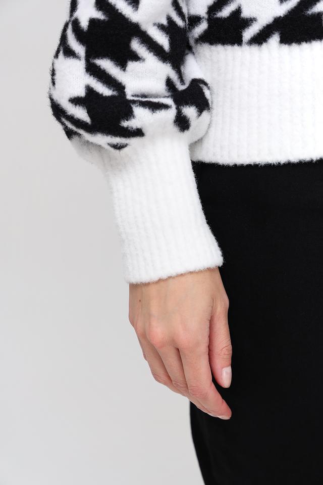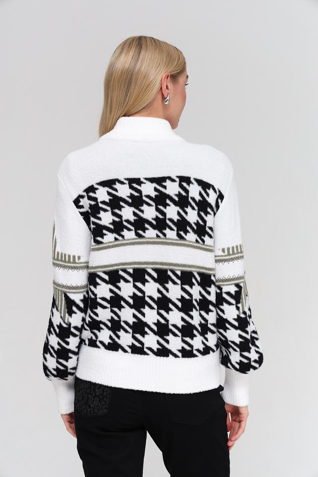 Этот жакет от Monari станет прекрасным дополнением к вашему гардеробу. Модель выполнена в белом цвете с классическим узором "гусиная лапка" в чёрно-зелёной гамме.