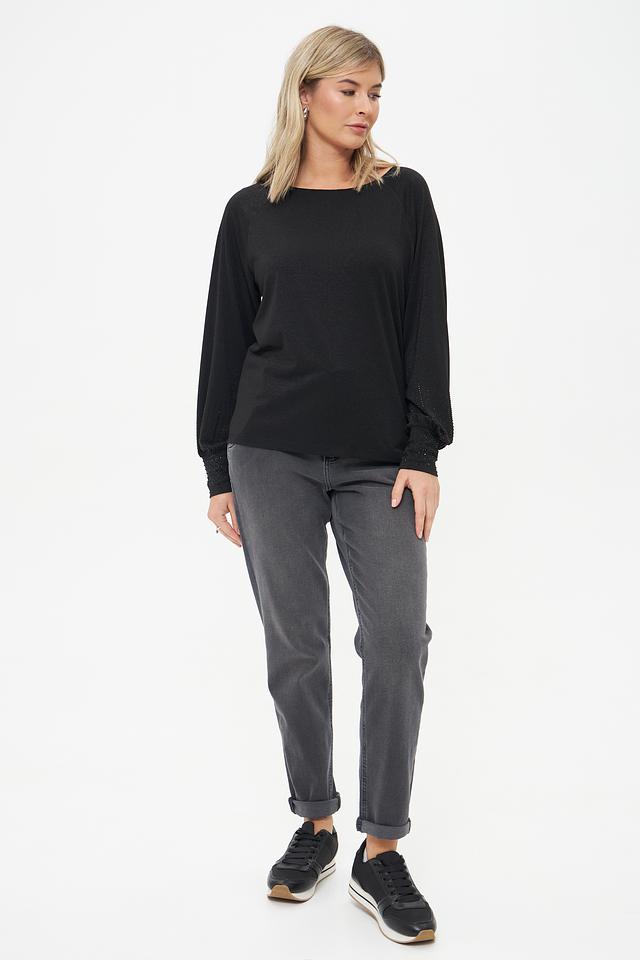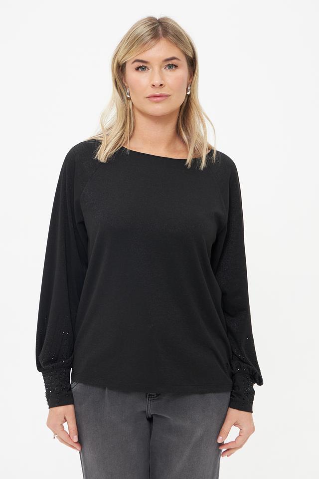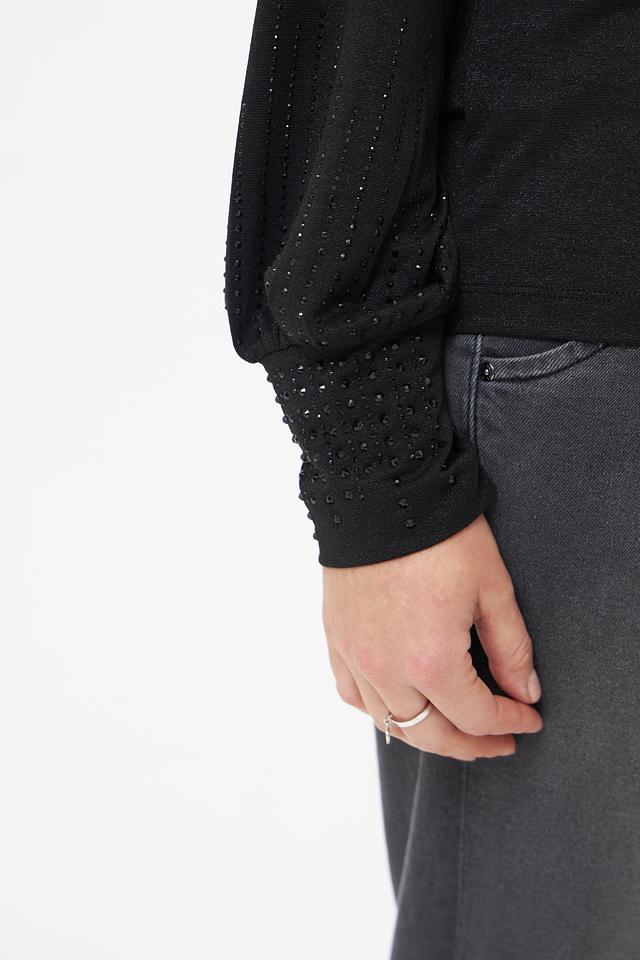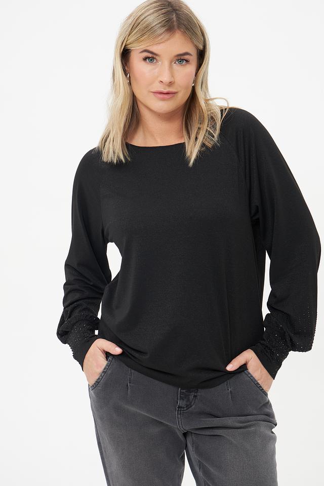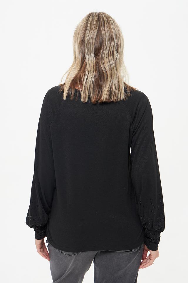 Чёрная блуза Monari с длинными рукавами и декоративной отделкой на манжетах. Изготовлена из сочетания полиэстера, вискозы и метализированного полиэстера, обеспечивающего комфорт и элегантный вид. Состав: полиэстер 49%, вискоза 26%, метализ.полиэстер 22%, эластан 3%