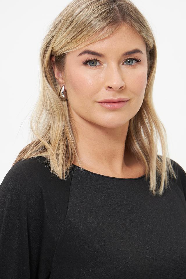 Состав ткани включает полиэстер, вискозу, метализированный полиэстер и эластан, что обеспечивает приятные тактильные ощущения, хорошую посадку по фигуре и лёгкость в уходе. Эта блуза идеально подойдёт для создания как повседневных, так и более нарядных образов.