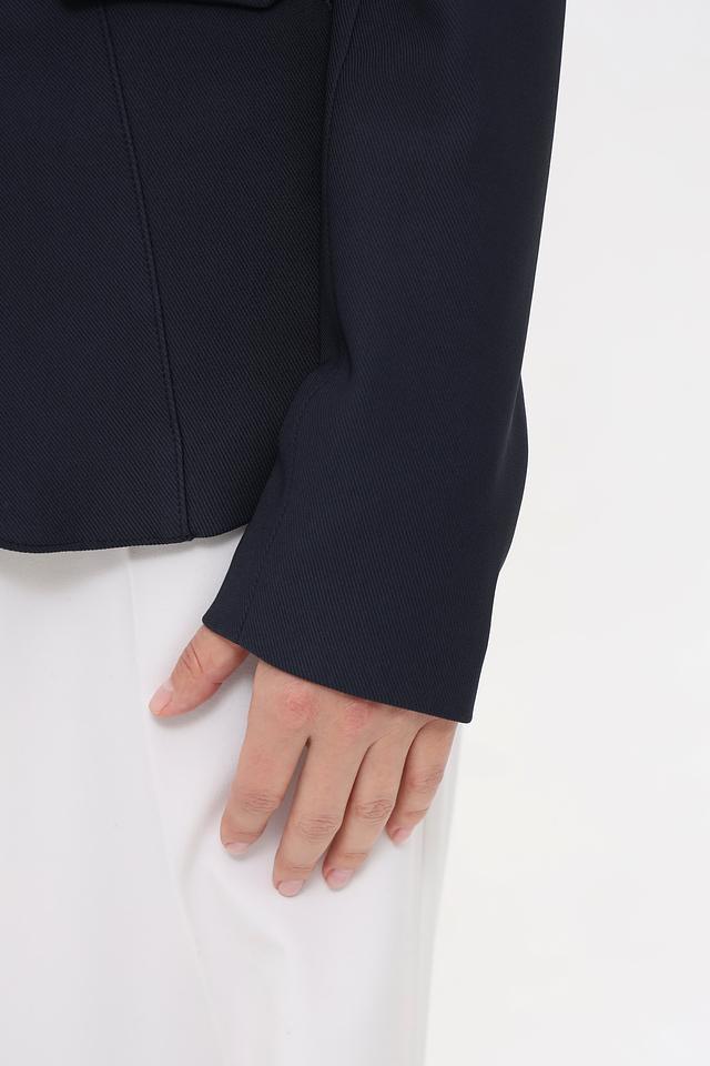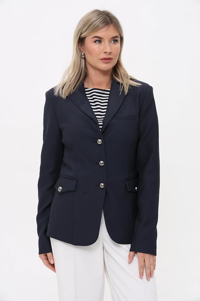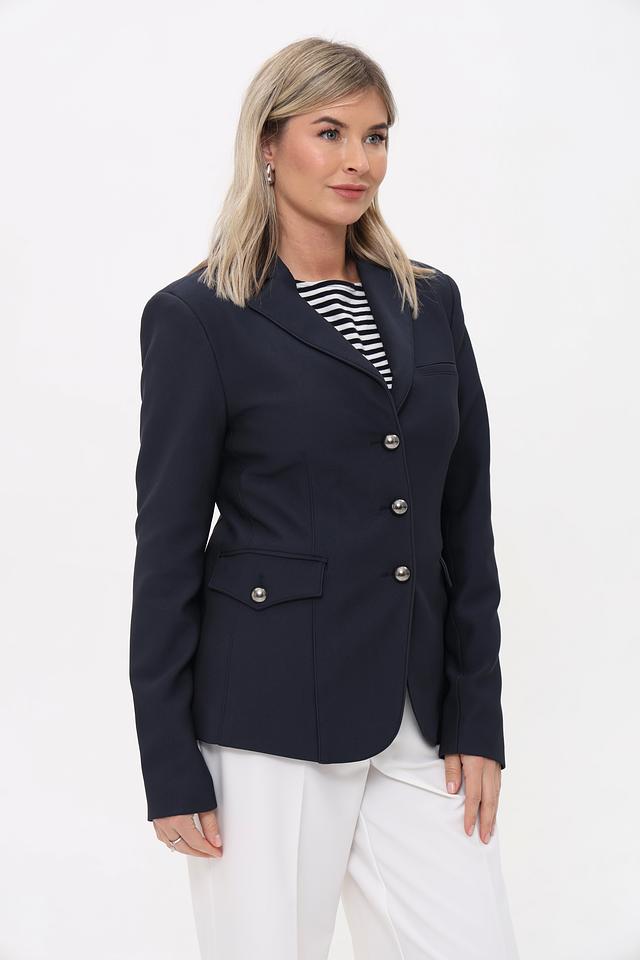 Тёмно-синий жакет Monari приталенного силуэта с застёжкой на три пуговицы. Классическая модель из полиамида и эластана станет отличным дополнением к вашему гардеробу. Состав: полиамид 94%, эластан 6%