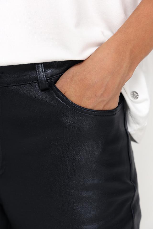 Брюки изготовлены из высококачественной экокожи, которая выглядит роскошно и при этом не требует сложного ухода. Состав ткани включает 95% хлопка и 5% эластана, что обеспечивает комфорт при носке и хорошую посадку по фигуре.