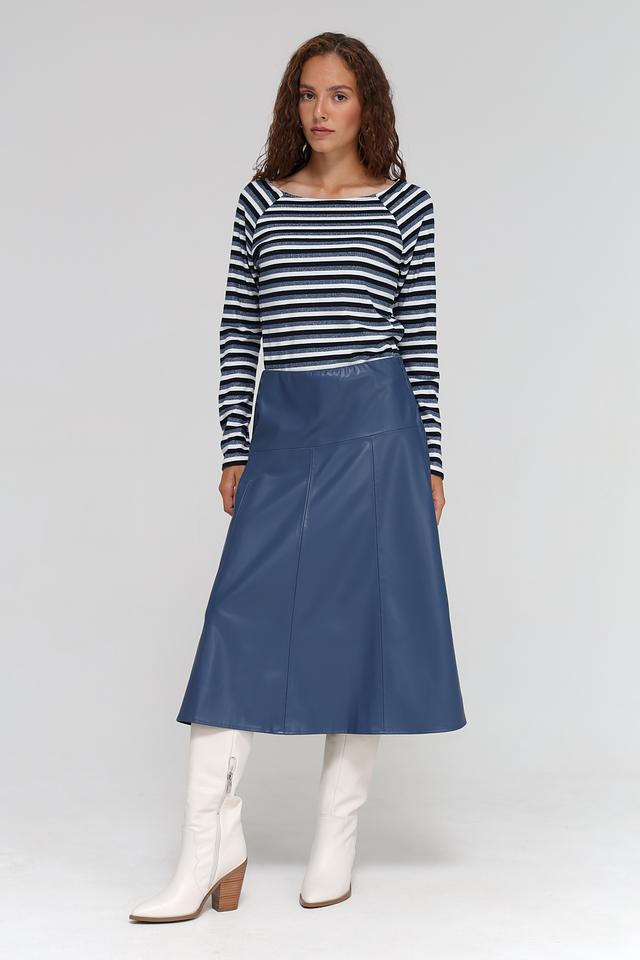 Лонгслив выполнен в классической полосатой расцветке, сочетающей в себе оттенки синего и белого. Круглый вырез горловины и длинные рукава делают его универсальным для различных образов. Приталенный силуэт подчеркивает фигуру, а эластан в составе обеспечивает отличную посадку и свободу движений.