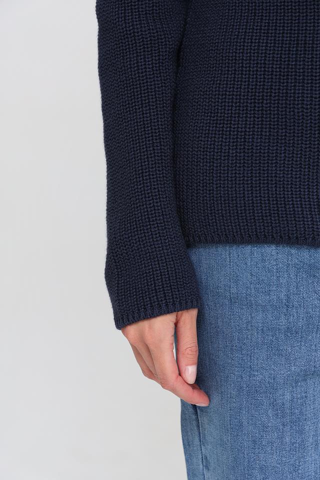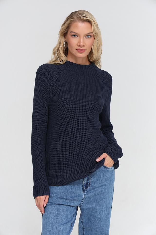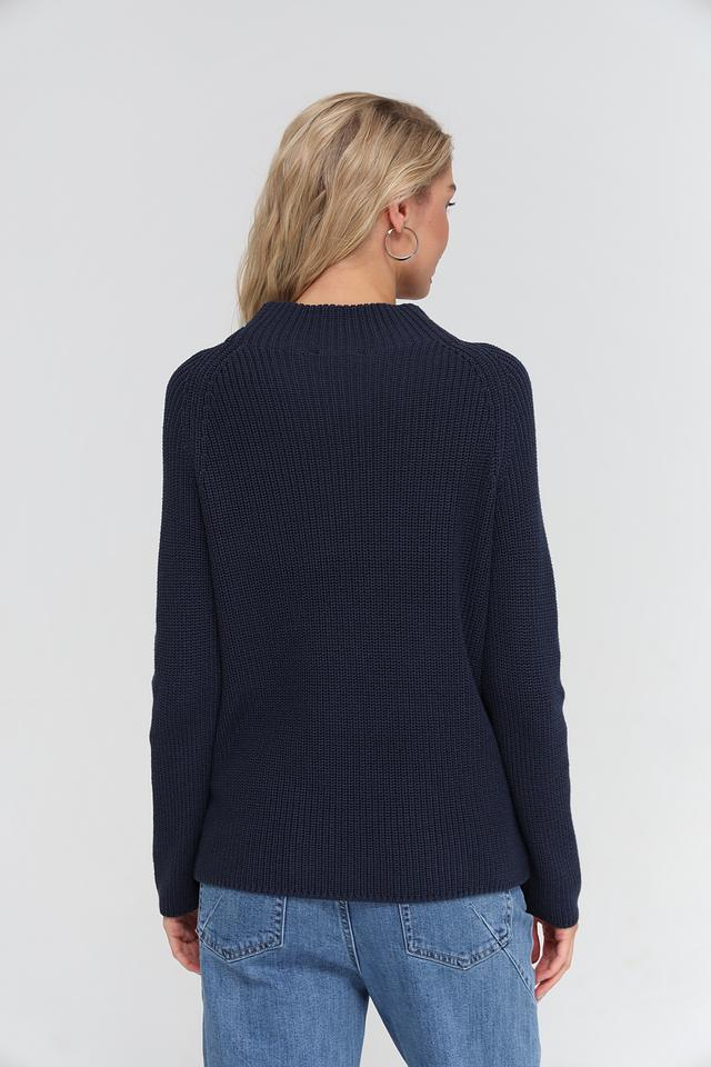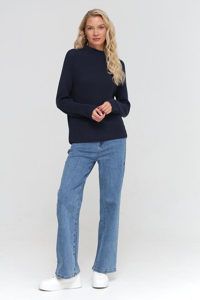 Тёмно-синий пуловер Monari из хлопка и полиакрила. Модель с высоким горлом и текстурной вязкой. Идеальный выбор для создания уютных образов. Состав: хлопок 50%, полиакрил 50%