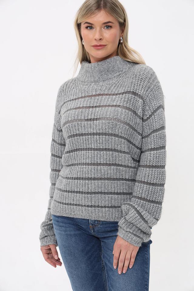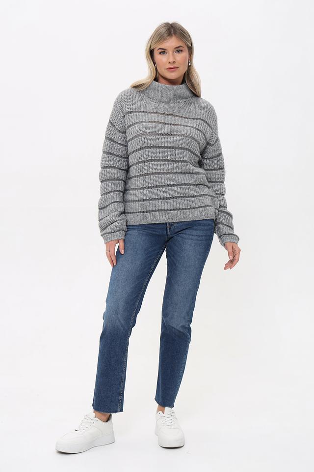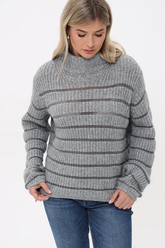 Серый пуловер Monari с полосками – это стильная и комфортная модель на каждый день. Изготовлен из мягкой пряжи с добавлением шерсти и альпаки, что обеспечивает тепло и уют. Высокий воротник добавляет элегантности. Состав: полиакрил 34%, метализ.полиэстер 29%, полиамид 17%, шерсть 9%, альпака 6%, хлопок 5%