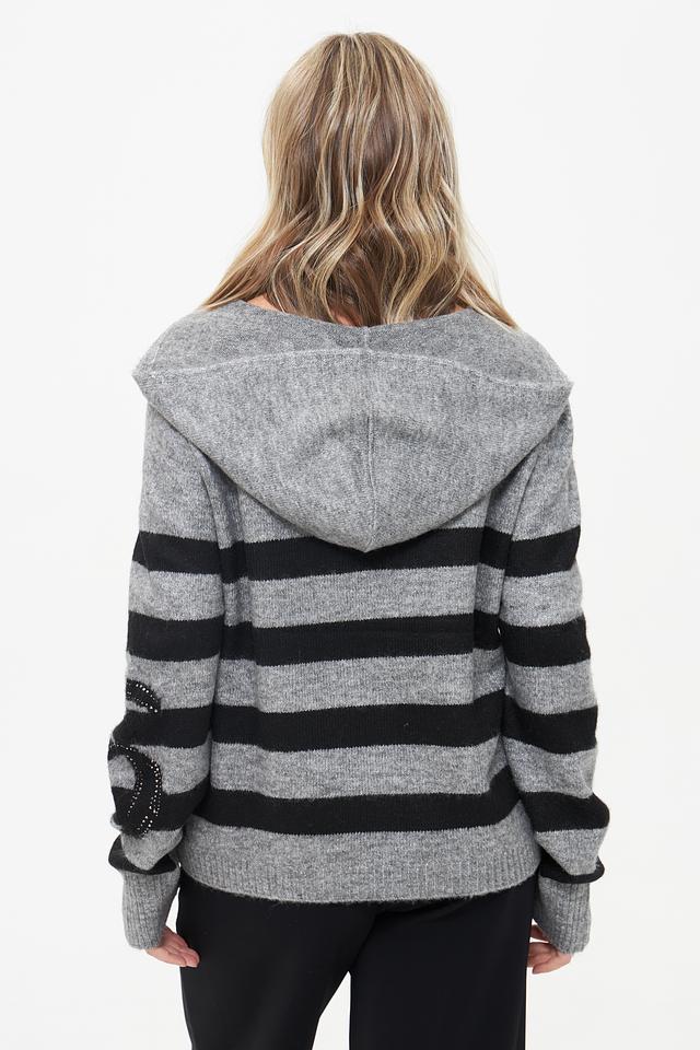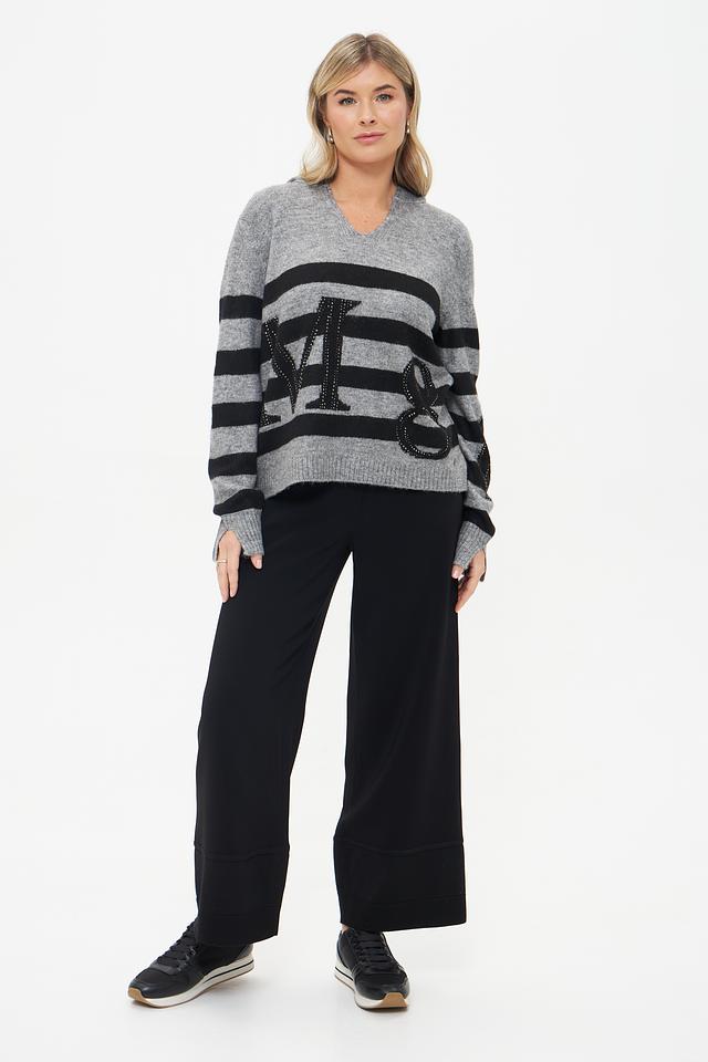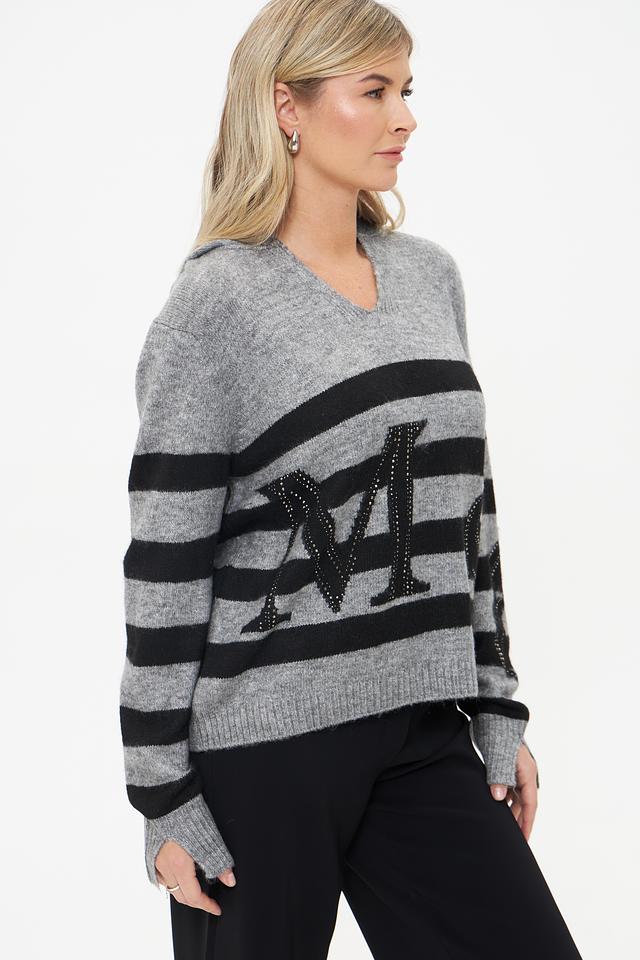 Серый пуловер Monari с полосками и логотипом – стильная и комфортная модель на каждый день. Уютный крой и оригинальный декор с буквенным принтом делают этот пуловер отличным выбором для создания модных образов. Состав: полиакрил 59%, вискоза 34%, полиэстер 7%