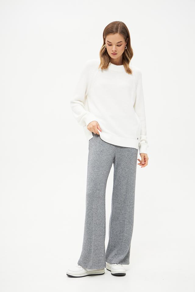 Модель имеет свободный силуэт, который не сковывает движений и позволяет создать расслабленный образ. Круглый вырез горловины подчеркивает элегантность и универсальность пуловера.