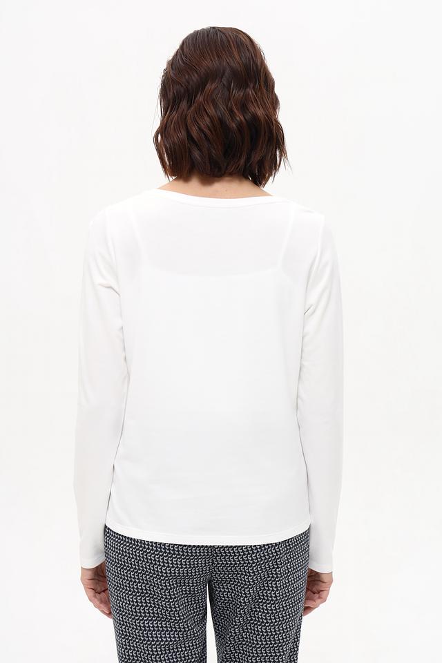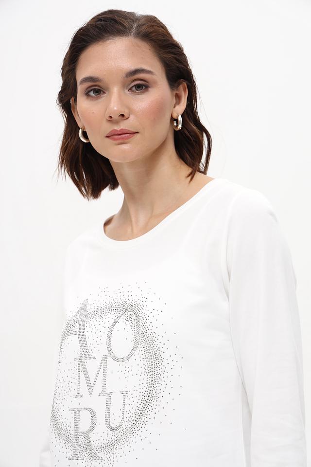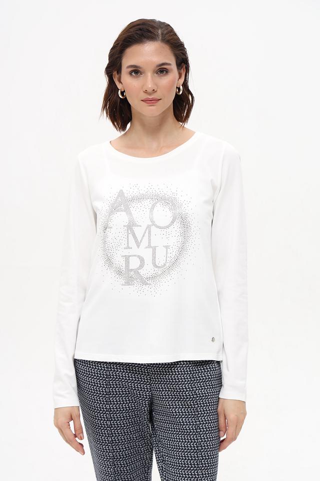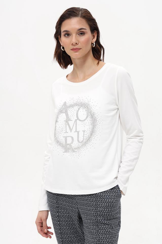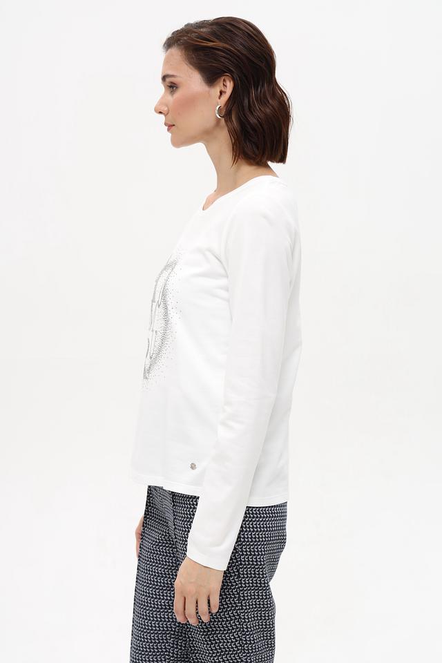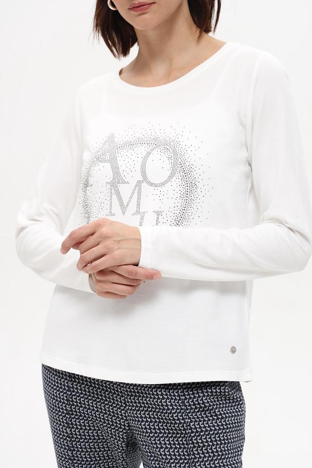 Белая футболка Monari с длинным рукавом украшена мерцающим логотипом. Изготовлена из мягкого хлопка с модалом, обеспечивающего комфорт и приятные ощущения на коже. Идеальный выбор для создания стильного повседневного образа. Состав: хлопок 50%, модал 50%