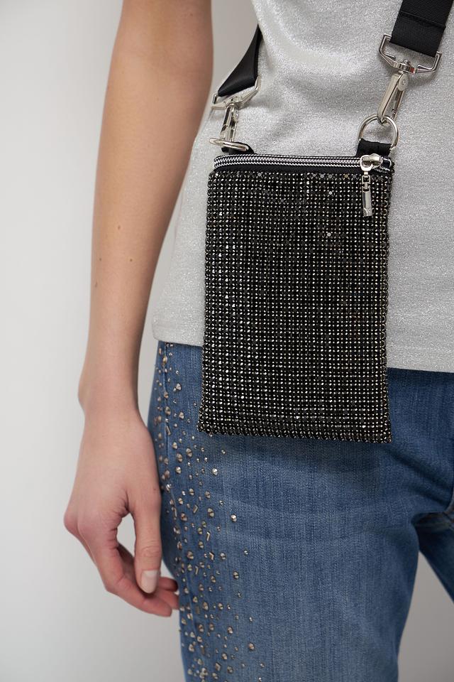 Эта сумка от Monari станет ярким акцентом вашего образа. Выполнена в чёрном цвете и полностью покрыта мерцающими кристаллами, что придает ей роскошный вид.