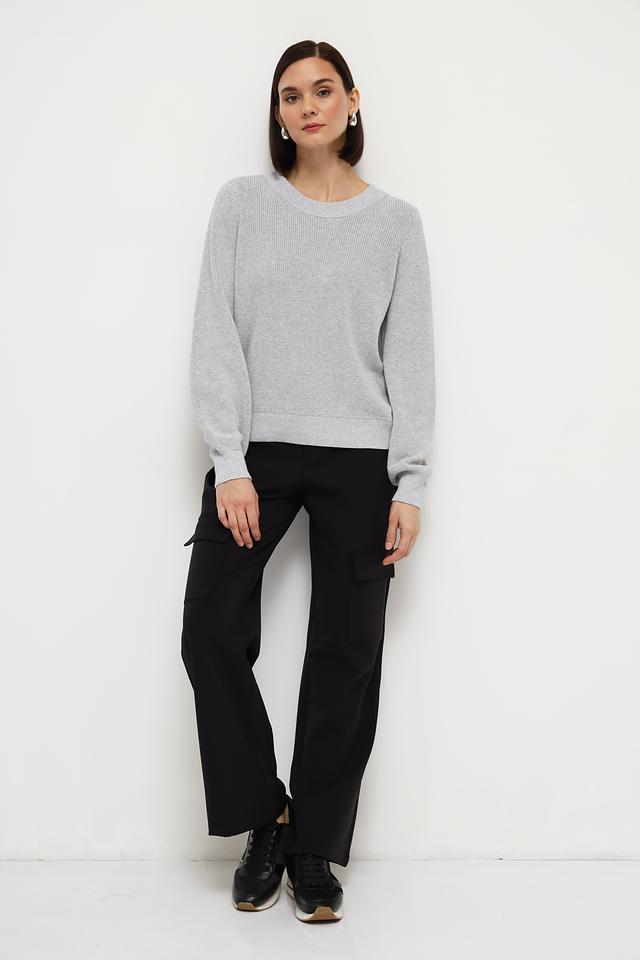Пуловер имеет классический круглый вырез горловины и свободный крой, который позволяет легко сочетать его с различными элементами одежды. Меланжевая текстура придает изделию особый шарм и делает его универсальным для создания как повседневных, так и более элегантных образов.