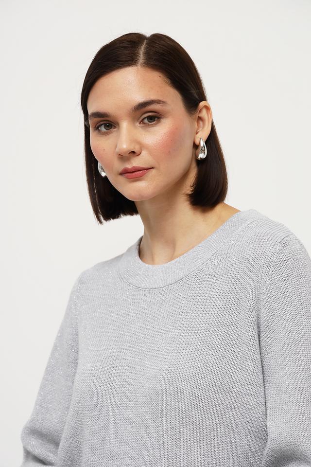 Серый пуловер Monari из хлопка с добавлением металлизированной нити. Изделие имеет круглый вырез горловины и свободный крой. Состав: 91% хлопок, 9% метализ.нить. Состав: хлопок 91%, метализ.нить 9%