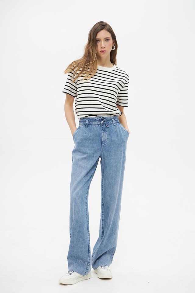 Особенностью данной модели являются защипы и пояс на завязках, которые добавляют оригинальности и позволяют регулировать посадку по фигуре. Джинсы изготовлены из 100% лиоцела, что гарантирует их экологичность и долговечность.