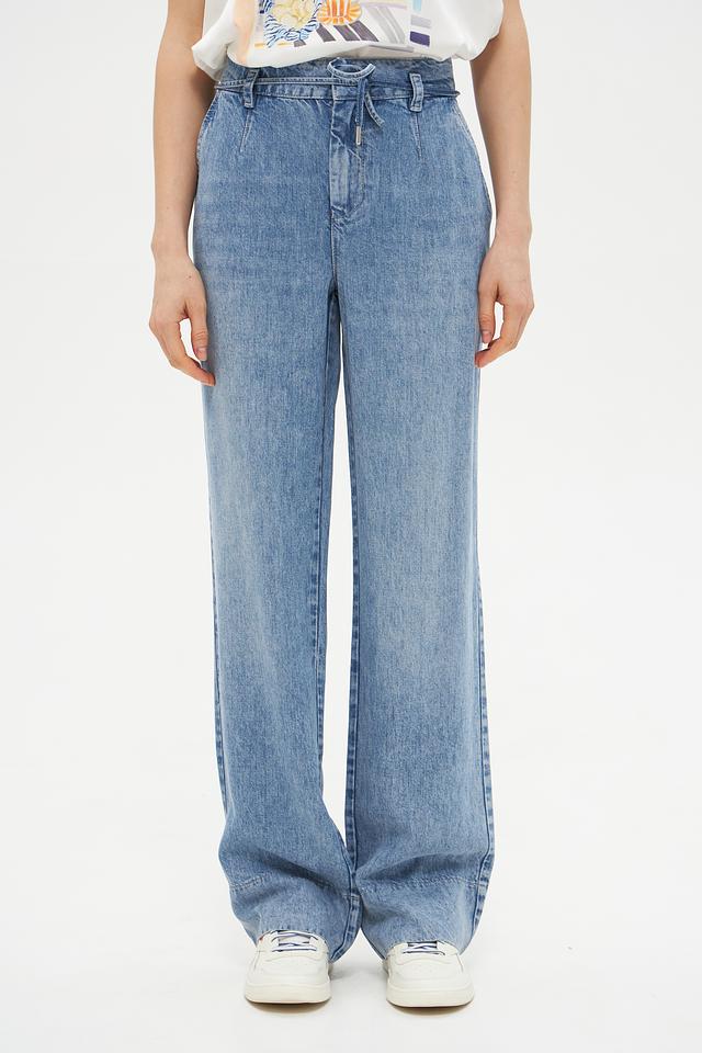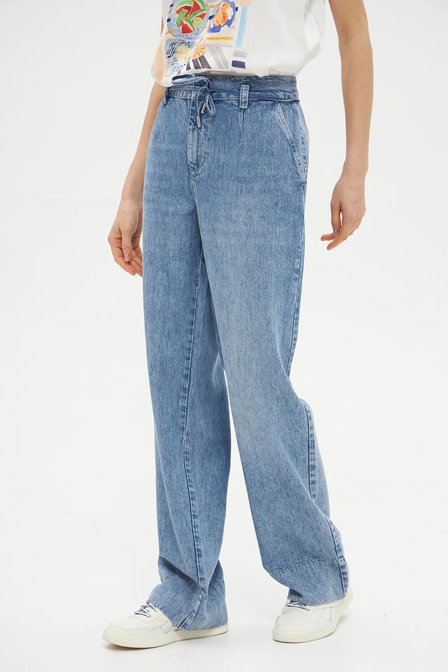 Женские джинсы Monari голубого цвета, выполнены в широком крое и с высокой посадкой. Модель отличается оригинальным дизайном с защипами и поясом на завязках, что обеспечивает комфортную посадку и стильный вид. Состав: лиоцел 100%