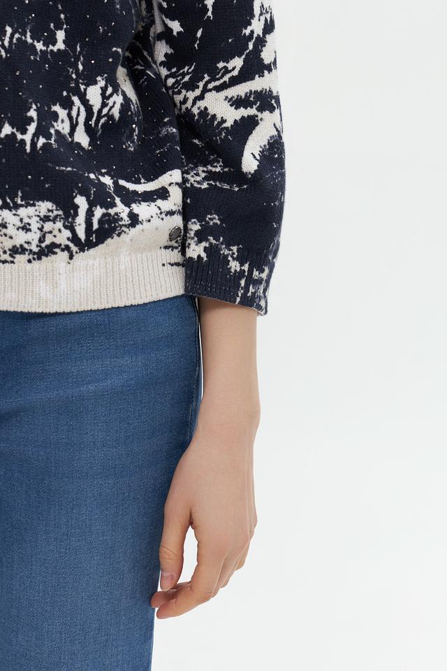 Бежевый пуловер Monari с оригинальным принтом в виде пейзажа станет стильным дополнением к вашему гардеробу. Изготовлен из мягкого хлопка, обеспечивающего комфорт в носке. Модель имеет удобный крой и рукава 3/4. Состав: хлопок 100%