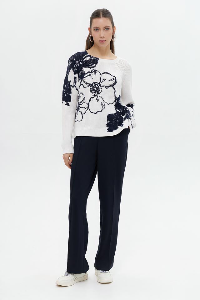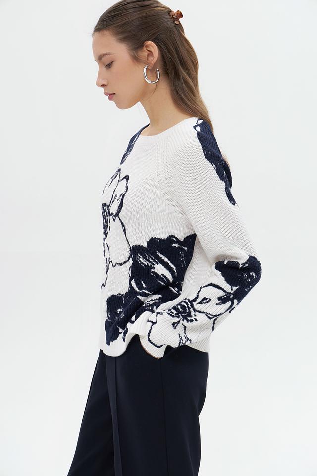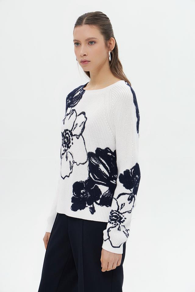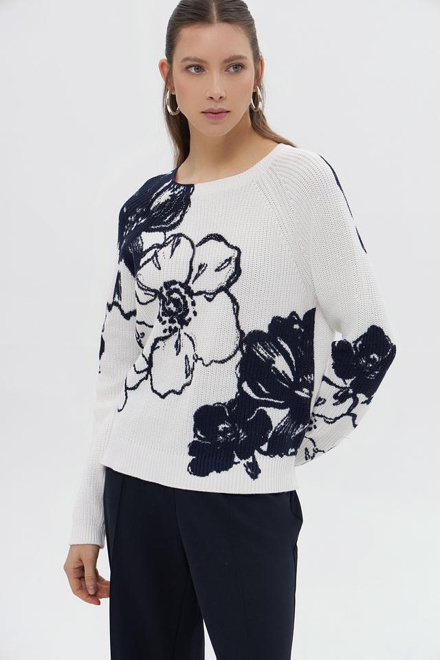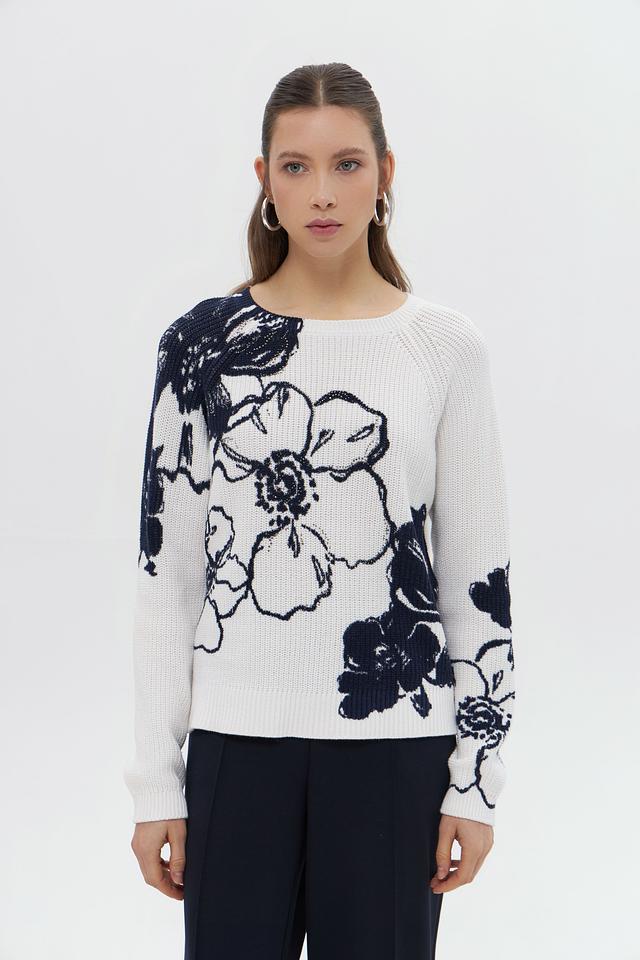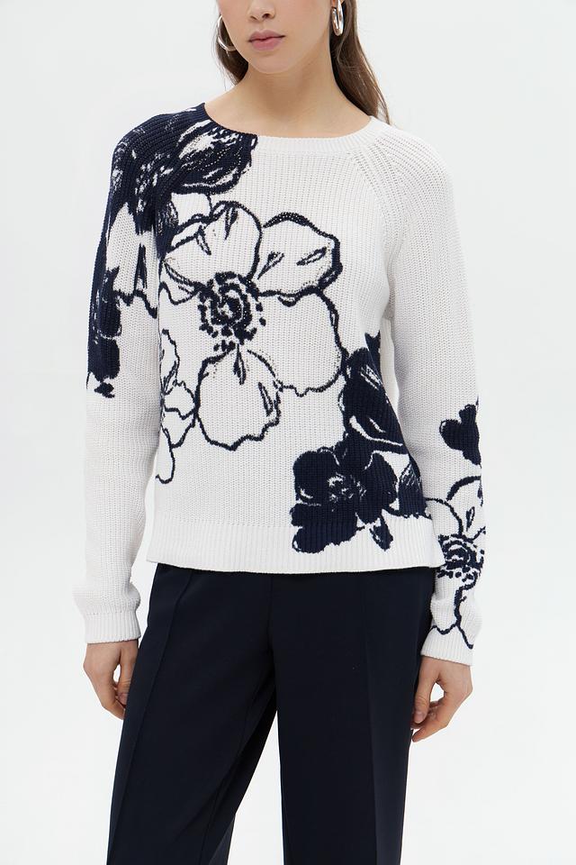 Белый пуловер Monari с крупным цветочным принтом. Изготовлен из 100% хлопка, обеспечивающего комфорт и воздухопроницаемость. Стильный и удобный выбор для повседневного гардероба. Состав: хлопок 100%