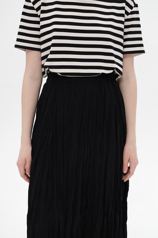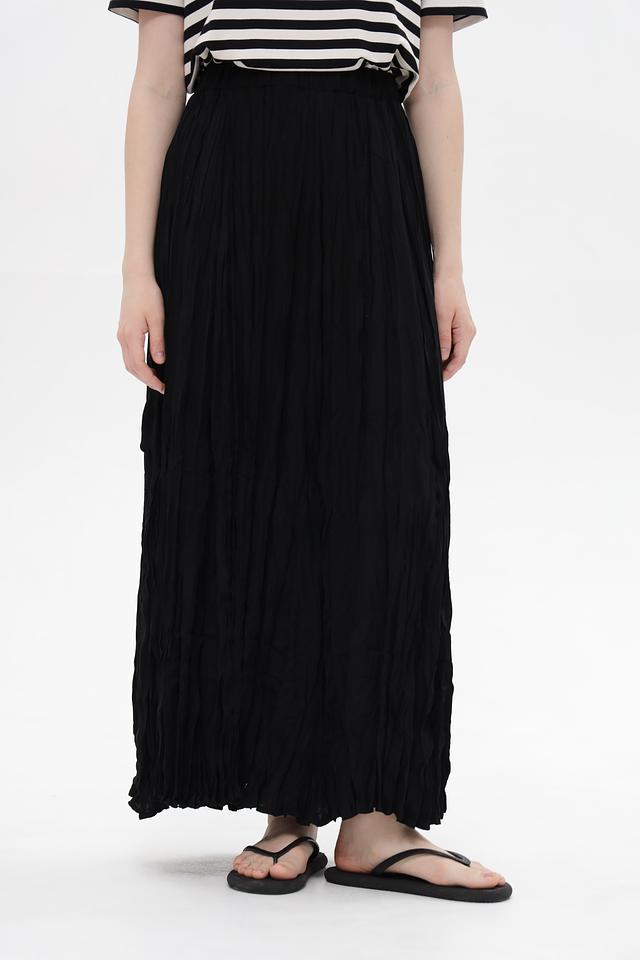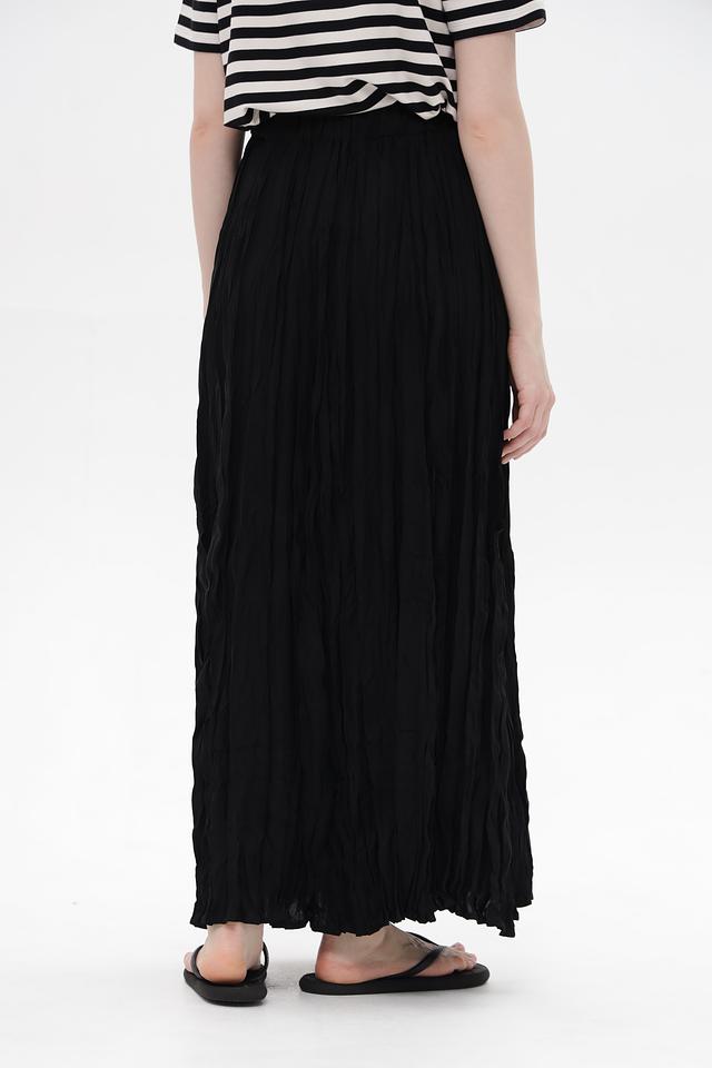 Чёрный цвет юбки делает её универсальным элементом гардероба, который легко сочетается с различными топами и обувью. Плиссированная фактура придает образу изысканность и лёгкость.